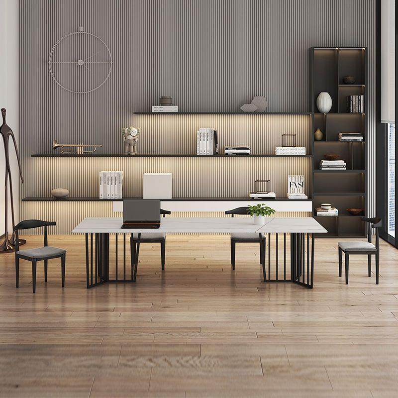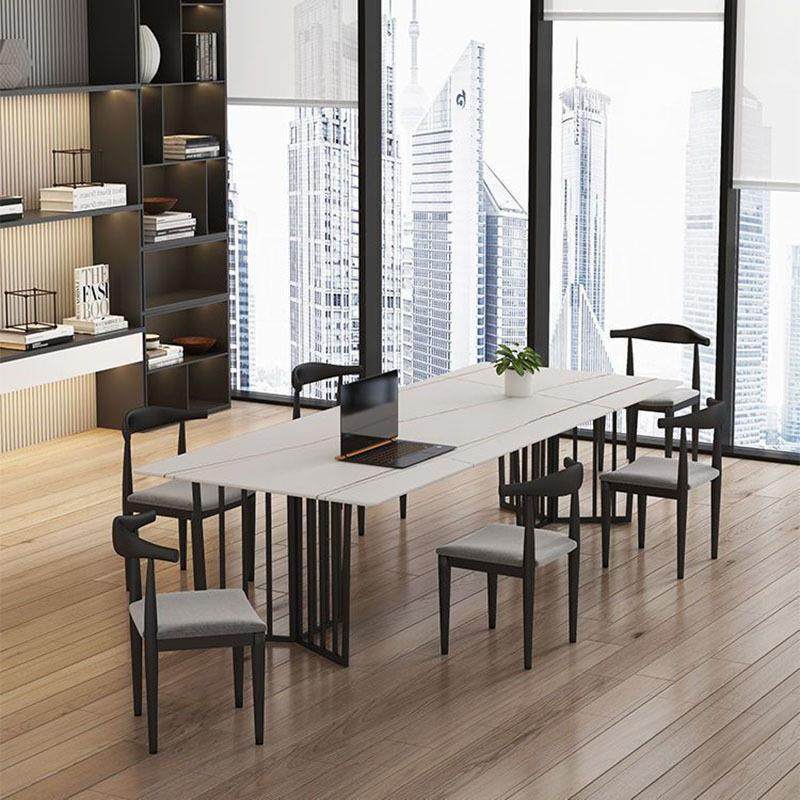 北欧岩板会议桌 工作室长方形洽谈培训桌 公司商务接待桌椅组合