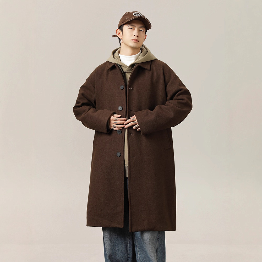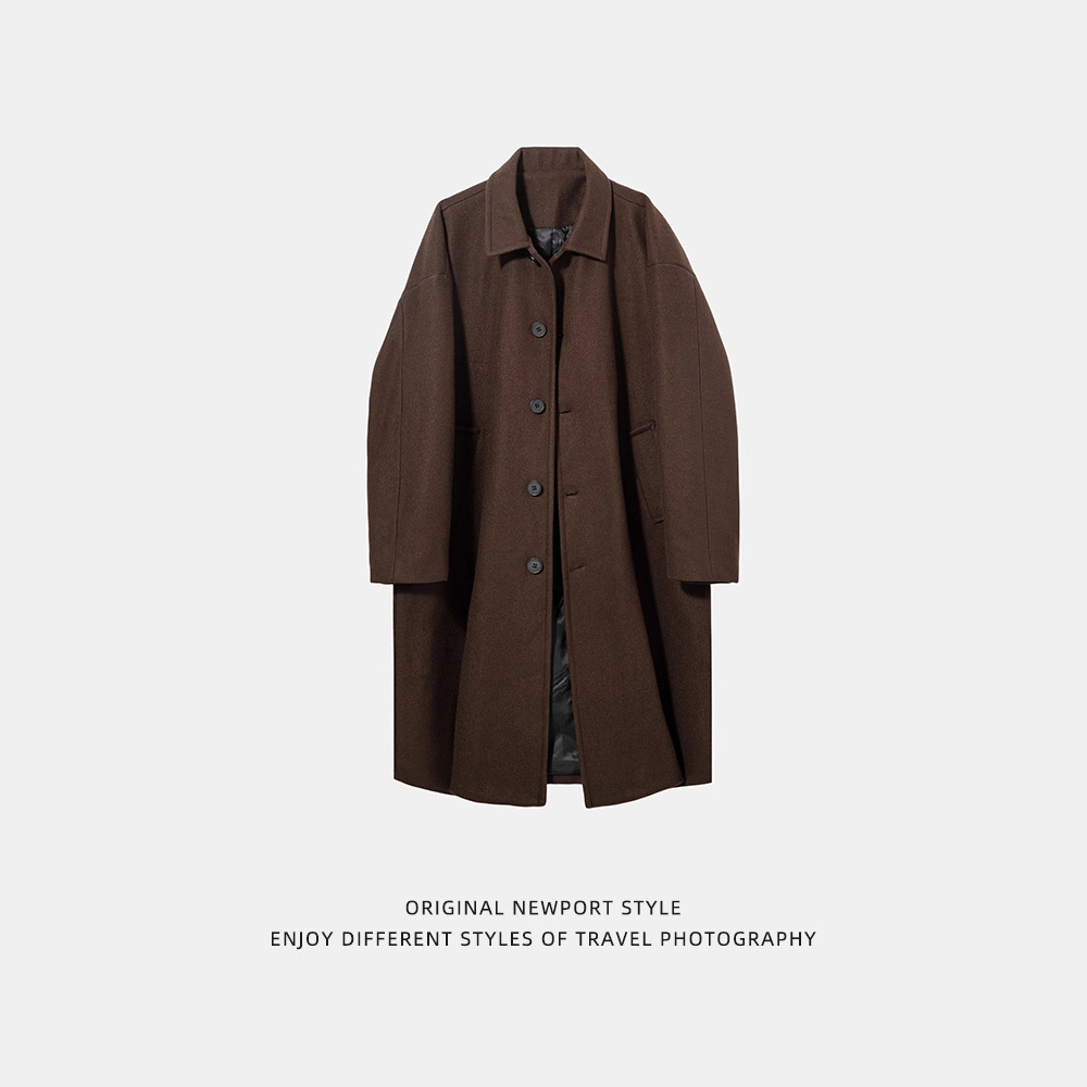 质感双面毛呢大衣男中长款过膝防风衣秋冬季日系宽松加厚翻领