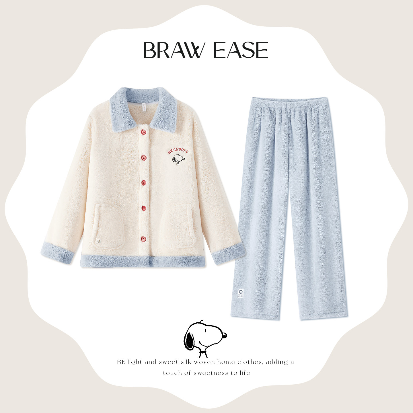 史努比珊瑚绒睡衣女冬季加绒加厚长袖秋冬可爱女士家居服套装冬天