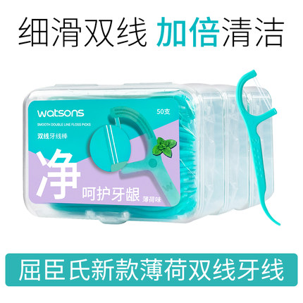 屈臣氏细滑深洁薄荷双线护理牙线家庭装便携清洁剔牙牙签一次性