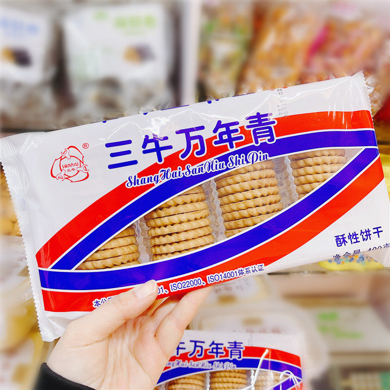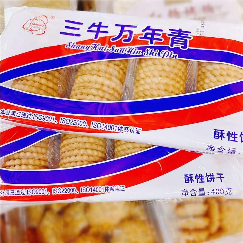 上海三牛万年青饼干400g*2袋葱油葱香酥性饼干怀旧办公休闲零食