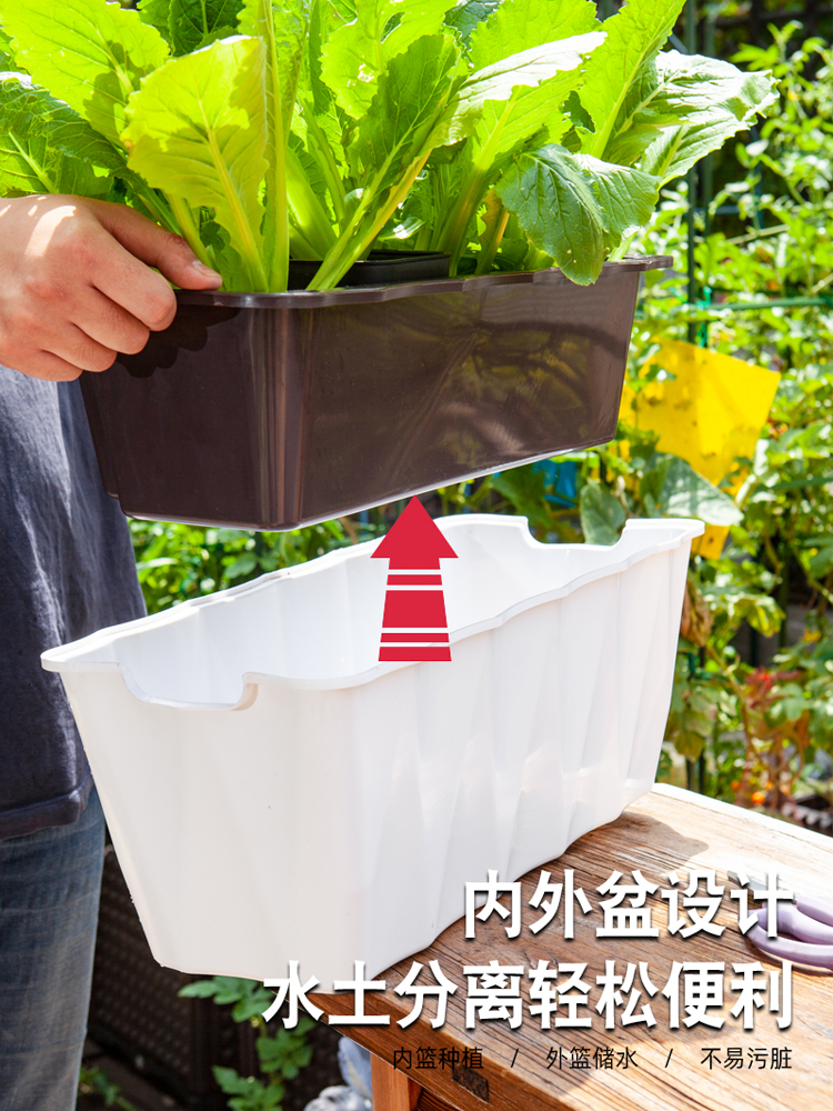 懒人自吸水花盆家庭阳台种菜神器长方形塑料种植箱种菜盆长条花槽