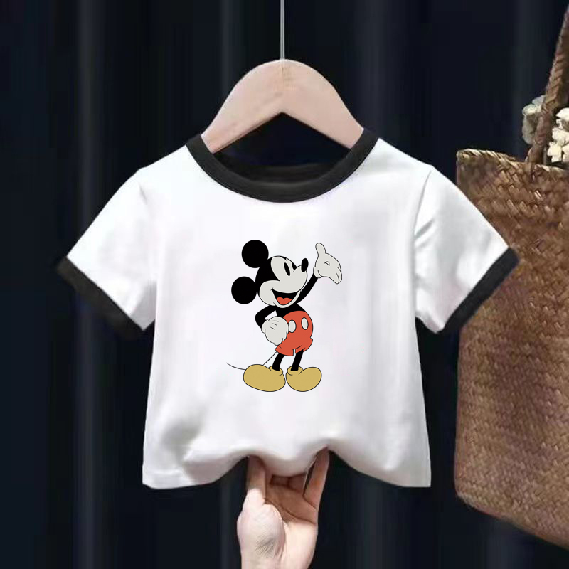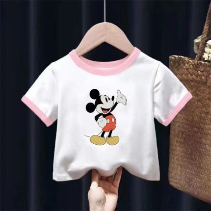 纯棉女童拼接短袖T恤夏季新款中小儿童宝宝洋气卡通百搭圆领上衣