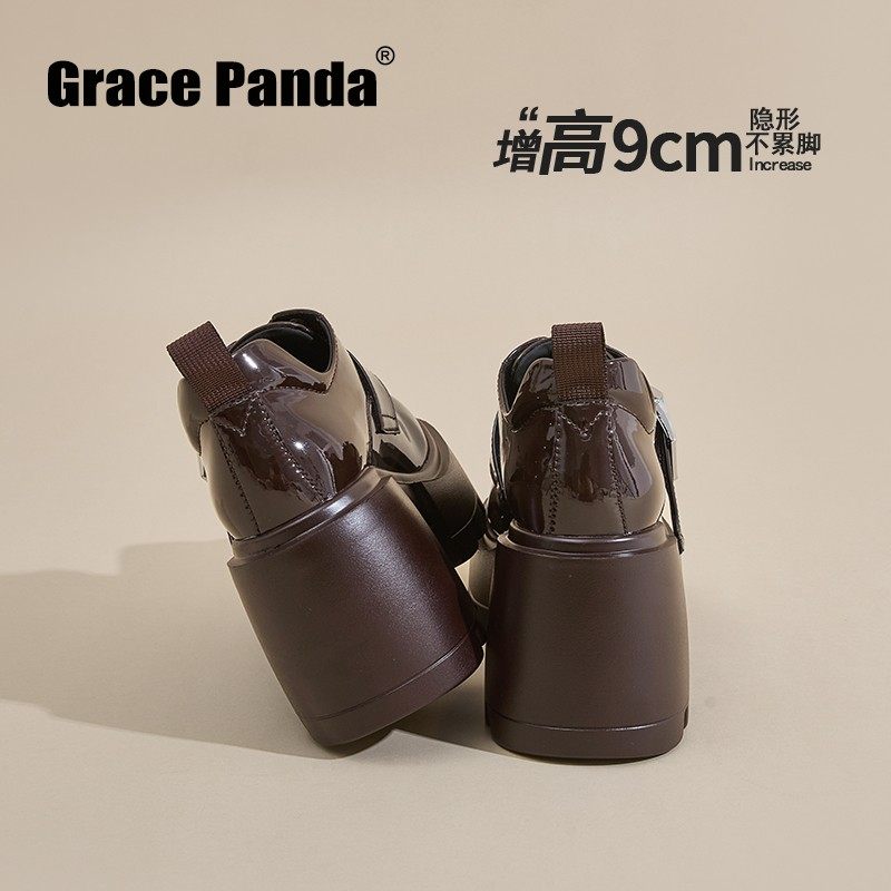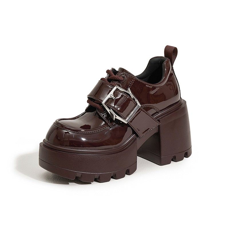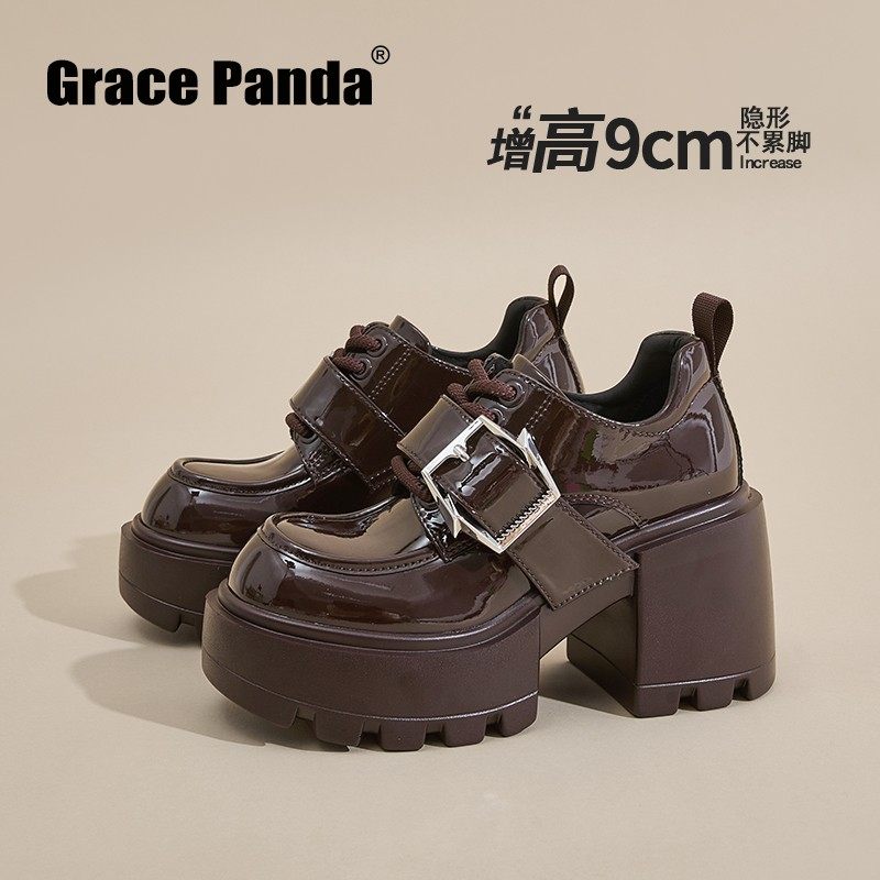 日系小皮鞋厚底9CM粗高跟单鞋女