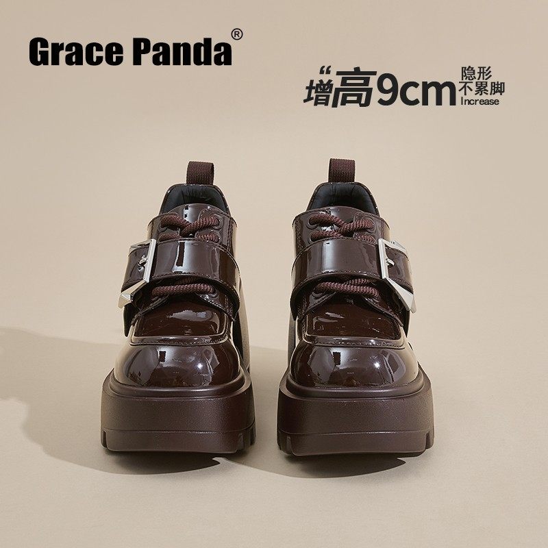 香港2025春秋新款小个子增高日系小皮鞋乐福厚底9CM粗高跟单鞋女
