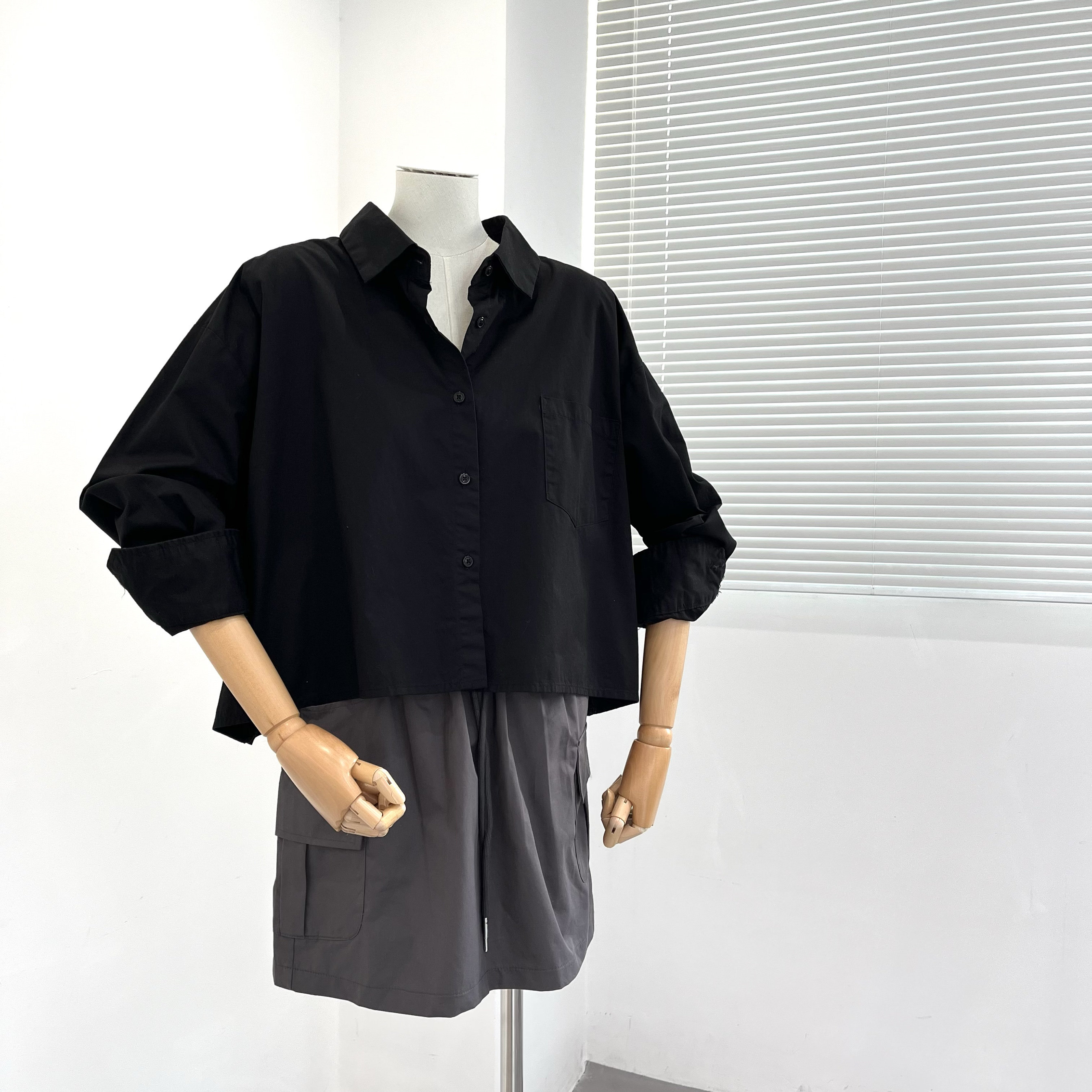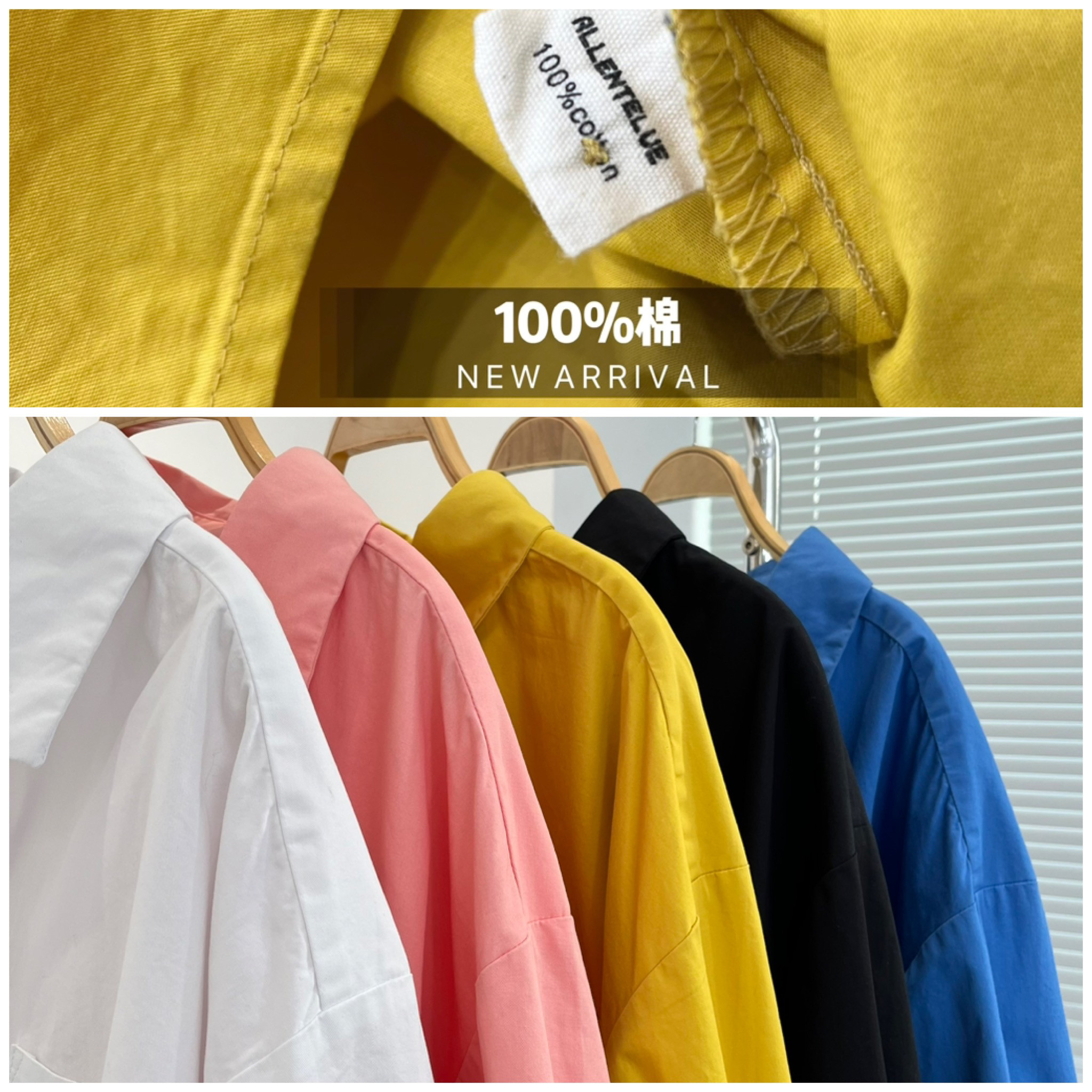 简约气质长袖纯棉衬衫女休闲百搭宽松白衬衣宽松短款纯色上衣外搭