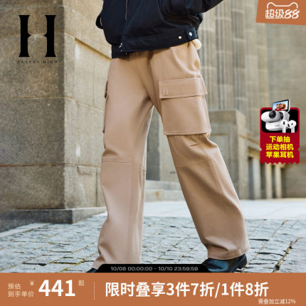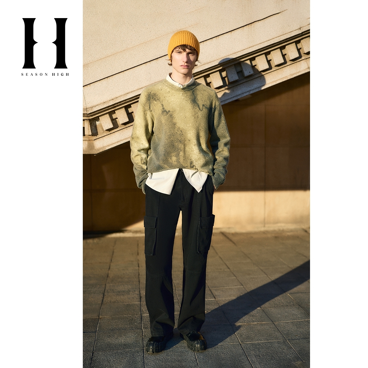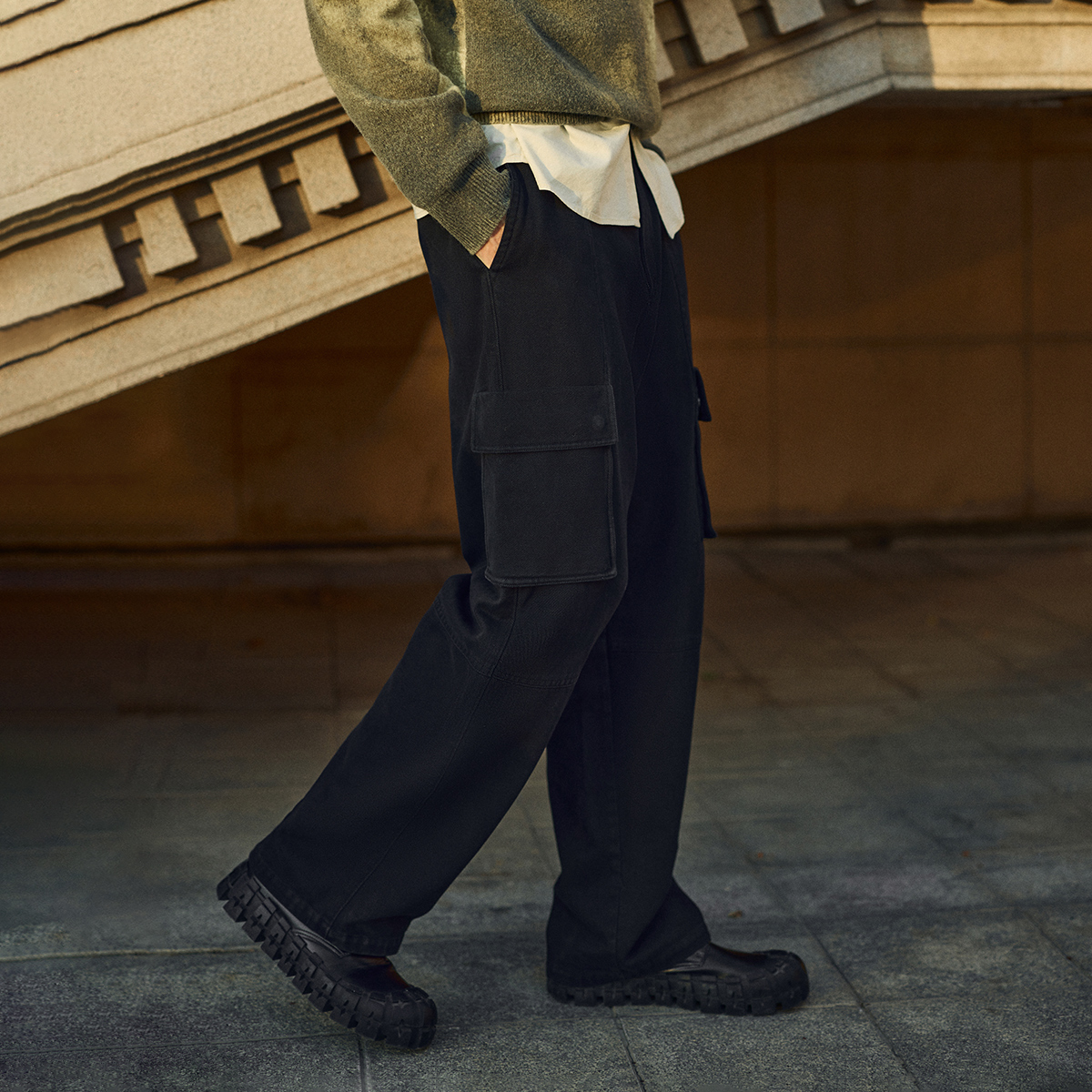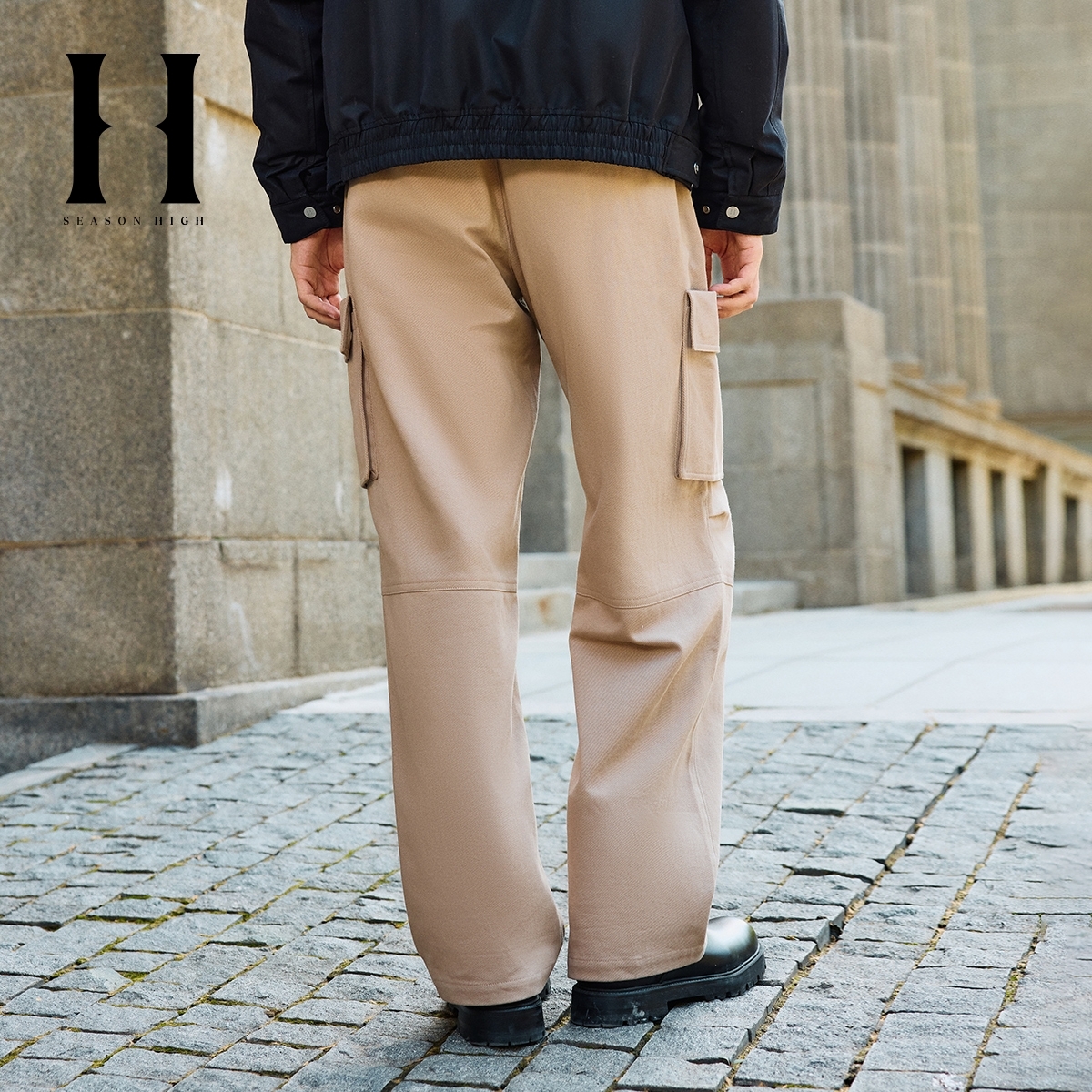 SEASONHIGH秋冬款男休闲裤抽绳松紧腰宽松工装多口袋长裤休闲裤男
