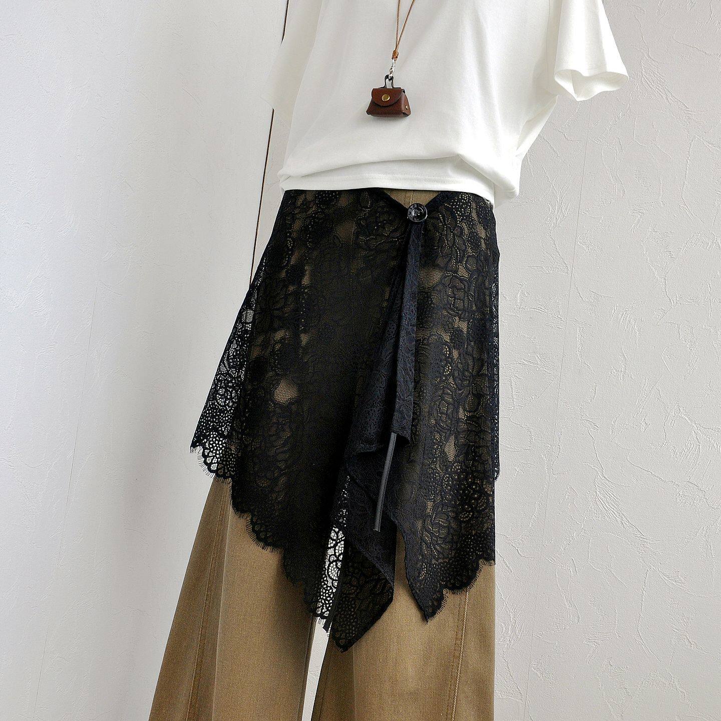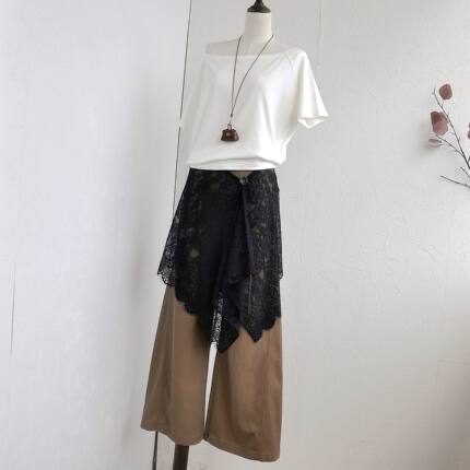 原创一片式系带蕾丝黑色不规则屁帘半身裙裙帘外搭腰封裙叠穿