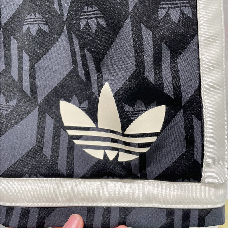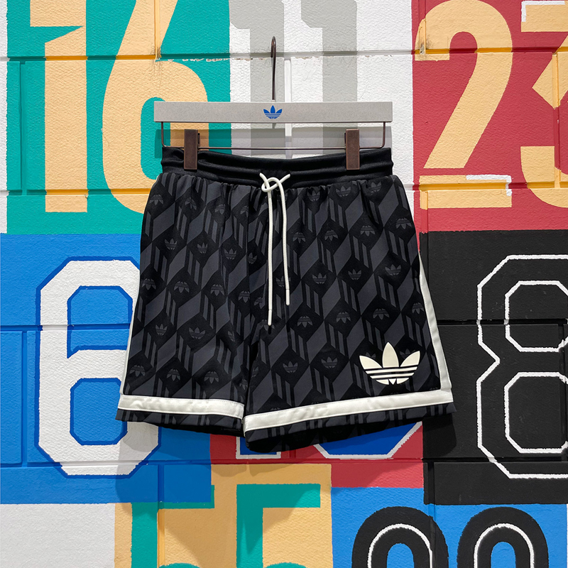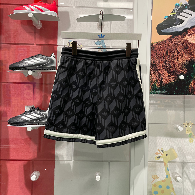 阿迪达斯三叶草男女裤2025夏季满印LOGO短裤宽松休闲五分裤JD5195
