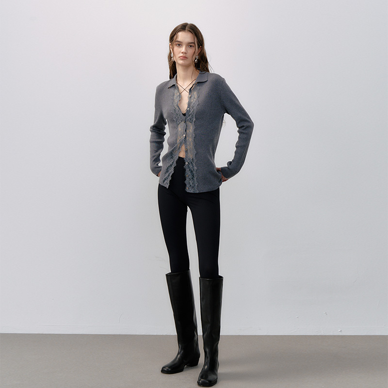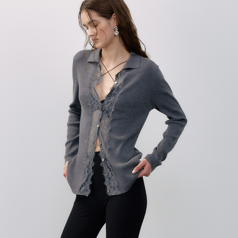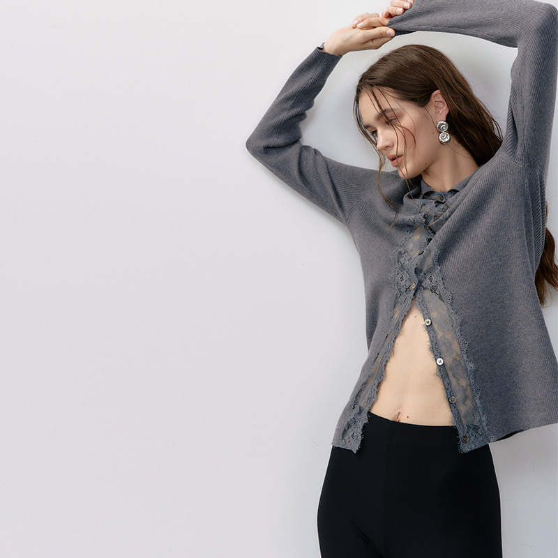 ArrivingArrive 蕾丝拼接纽扣针织防晒开衫修身显瘦长袖上衣女