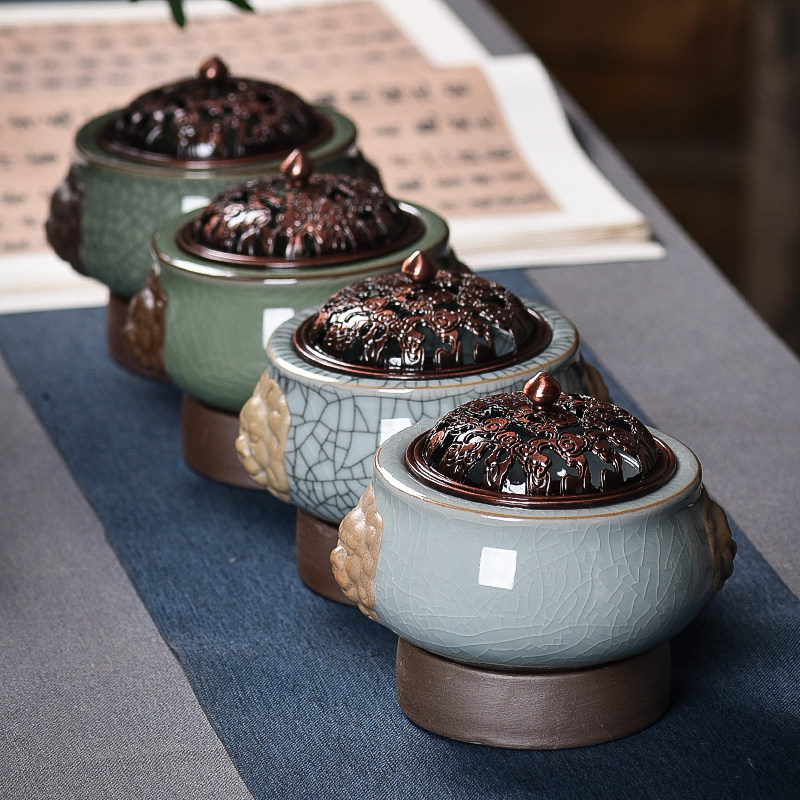 陶瓷电子香炉定时调温家用室内沉香檀香青瓷双耳狮子头插电熏香炉