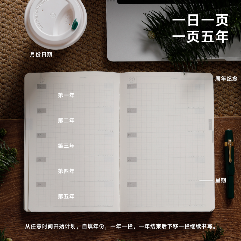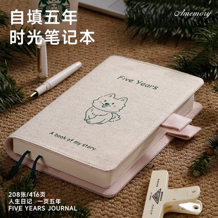 Amemory五年日记本自填手账本5年时光笔记本三年自由书记录本雨露麻星空棉封套款日程本文具礼品高档礼盒套装