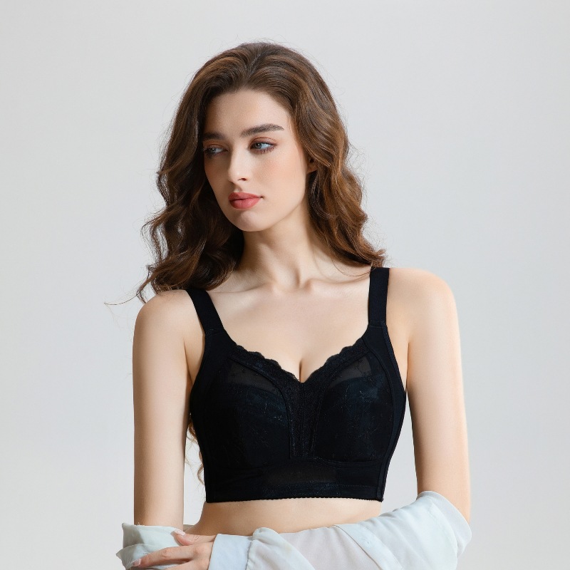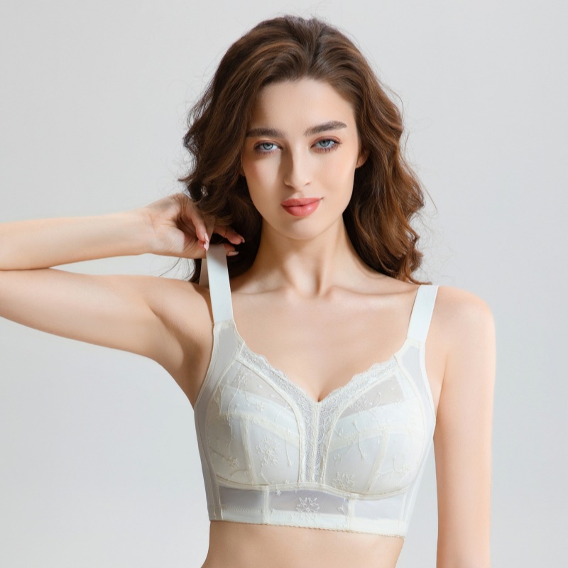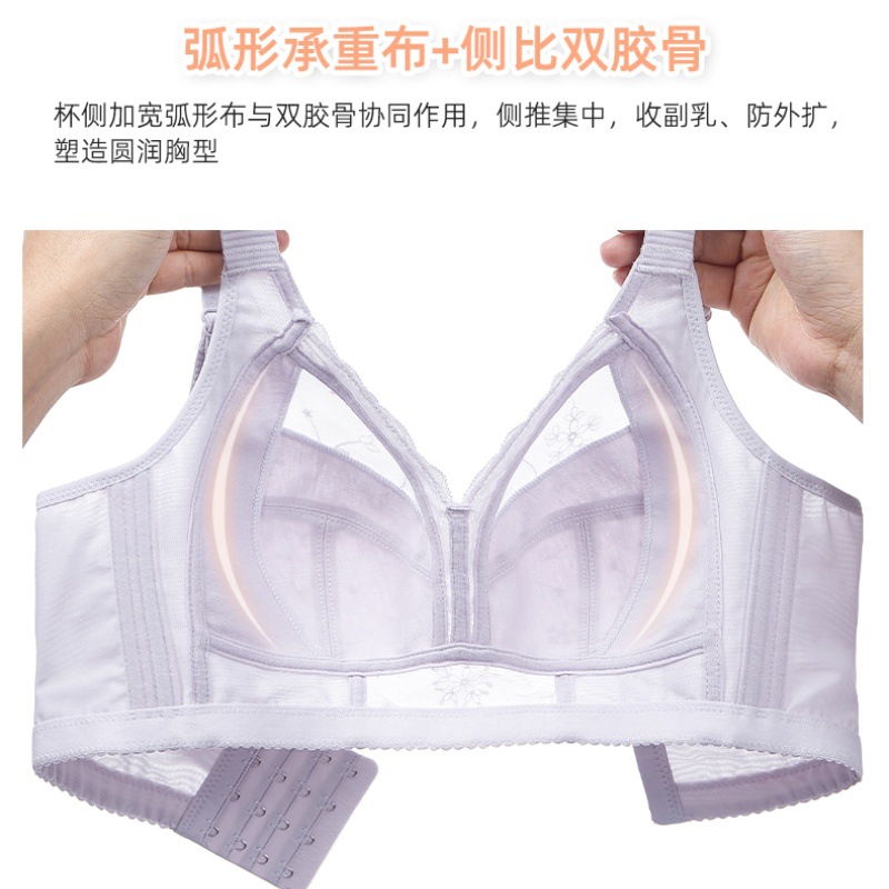 大胸显小内衣女超薄款透气全棉内杯聚拢收副乳上托无钢圈刺绣文胸