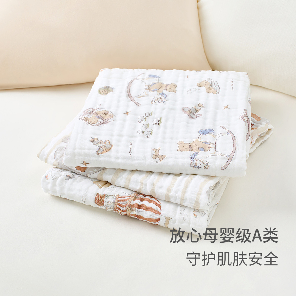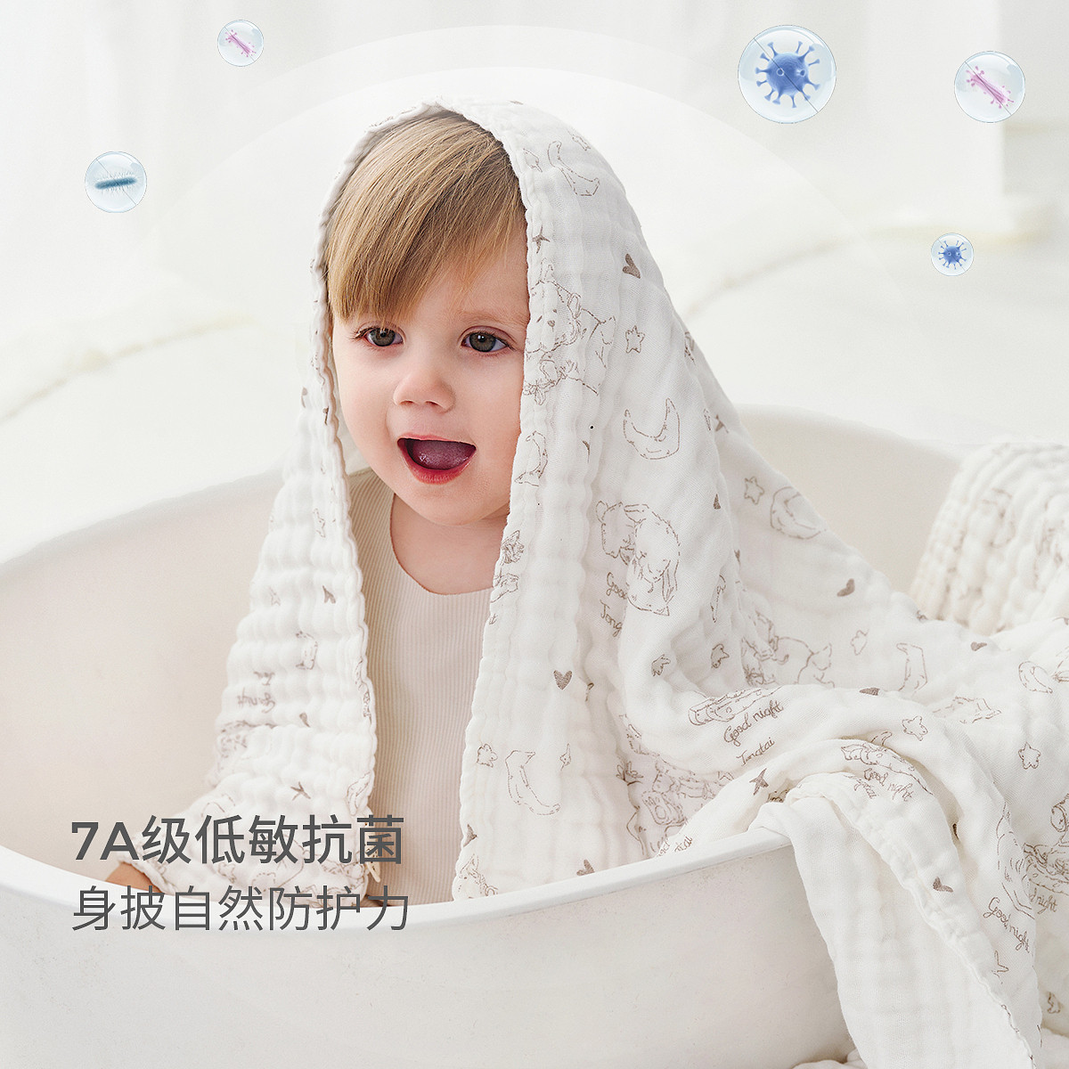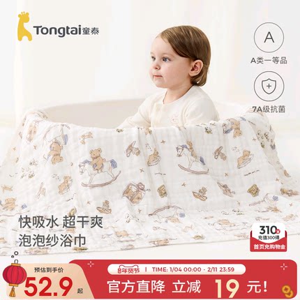 童泰婴儿浴巾纯棉宝宝加大吸水裹巾男童女童6层泡泡纱全棉洗澡巾