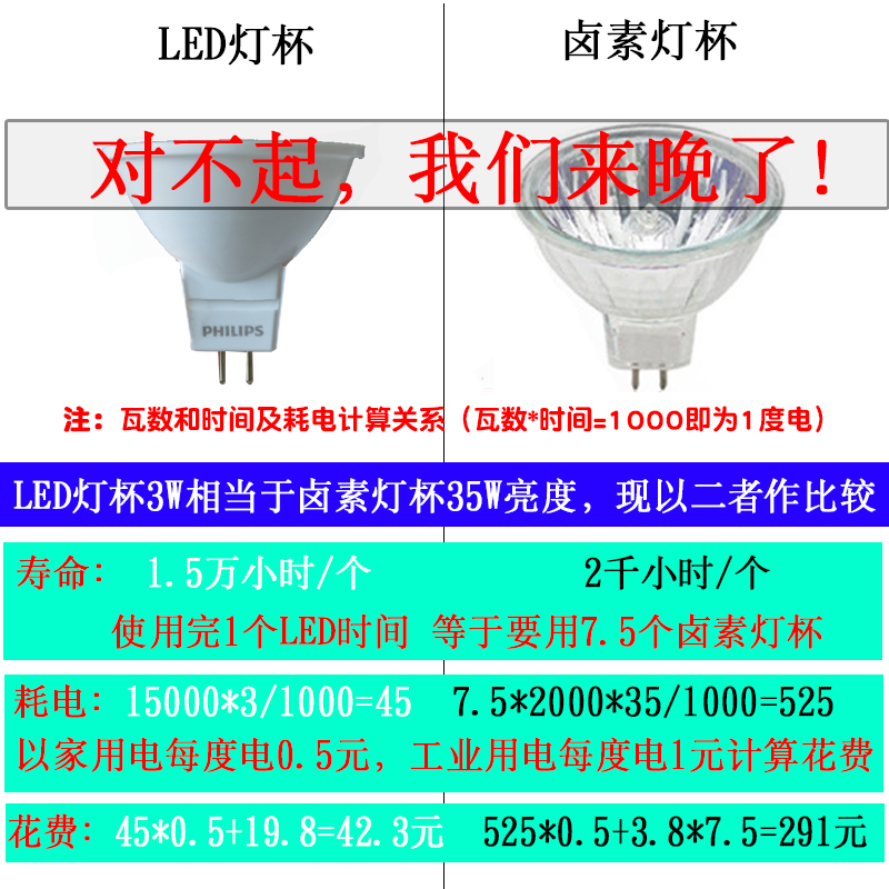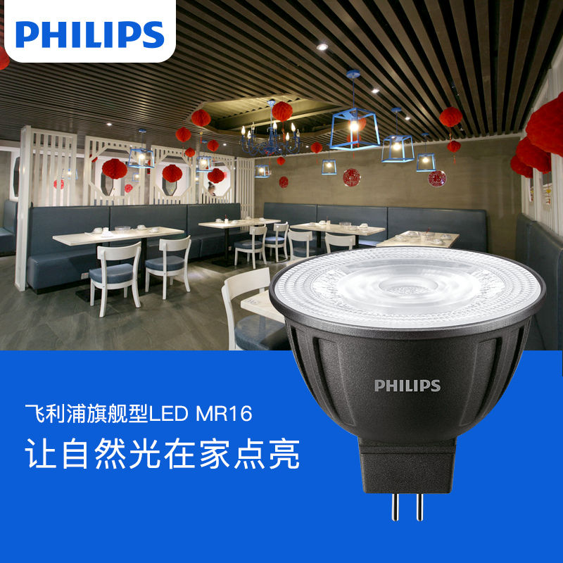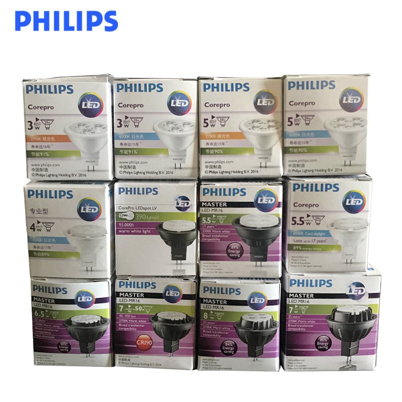 飞利浦灯杯LED灯泡12V低压射灯插泡12伏MR16灯杯插脚5CM白光黄光
