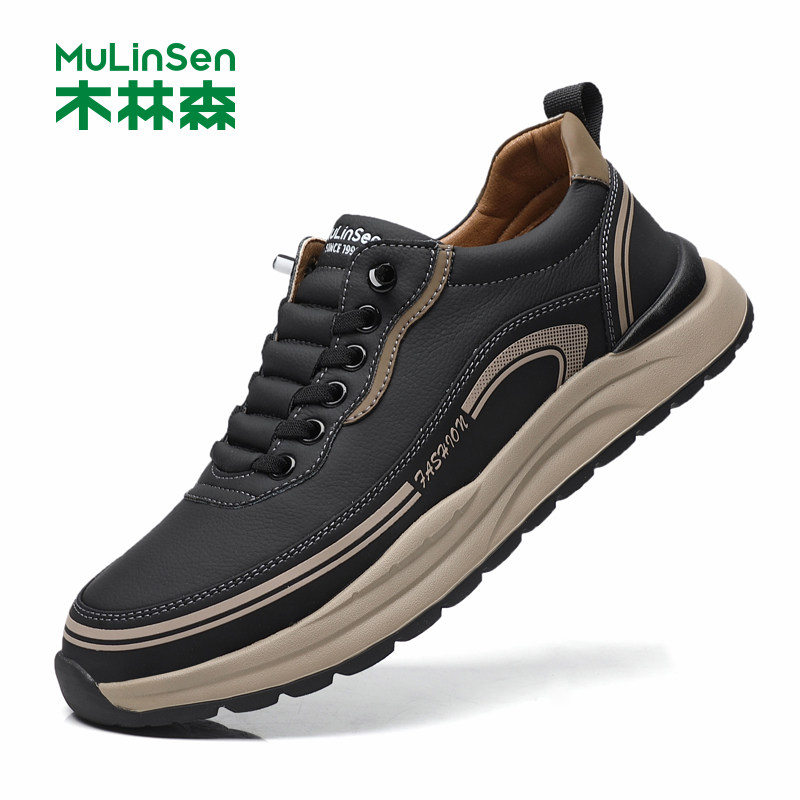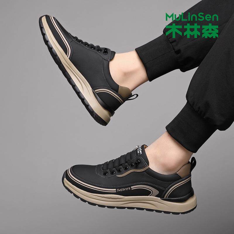 木林森男鞋真皮软底运动休闲皮鞋