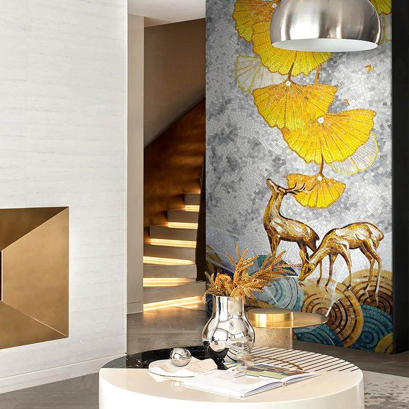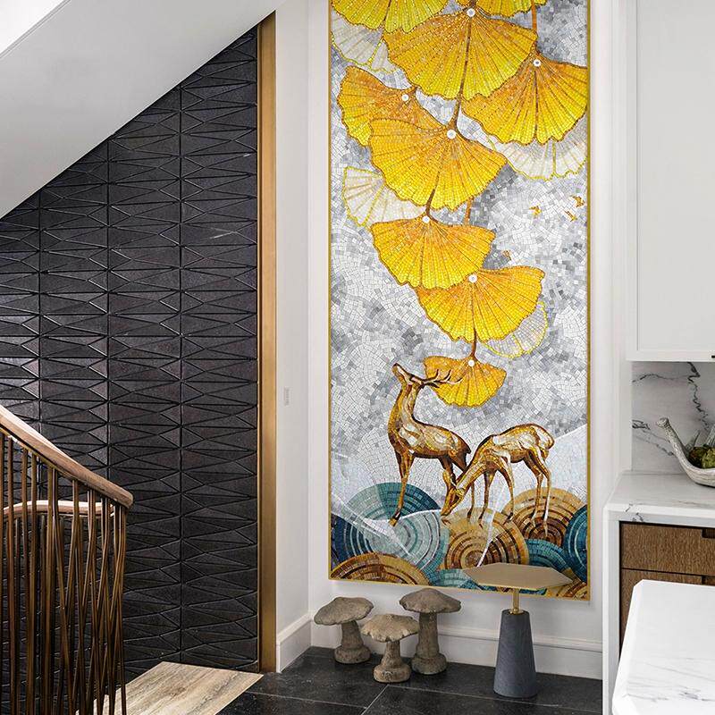 北欧简约剪画拼图玻璃马赛克瓷砖客餐厅玄关过道背景墙装饰画墙贴