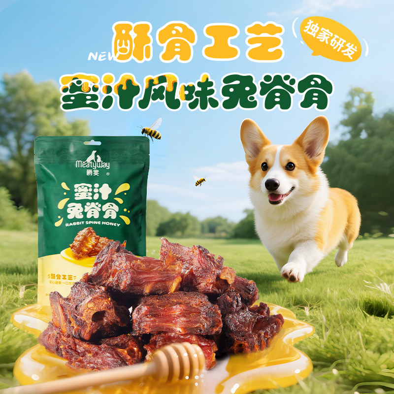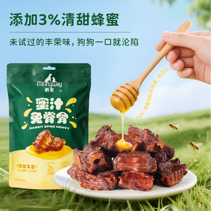 【新品首发】Meatyway爵宴蜜汁风味兔脊骨酥骨工艺狗狗零食磨牙棒