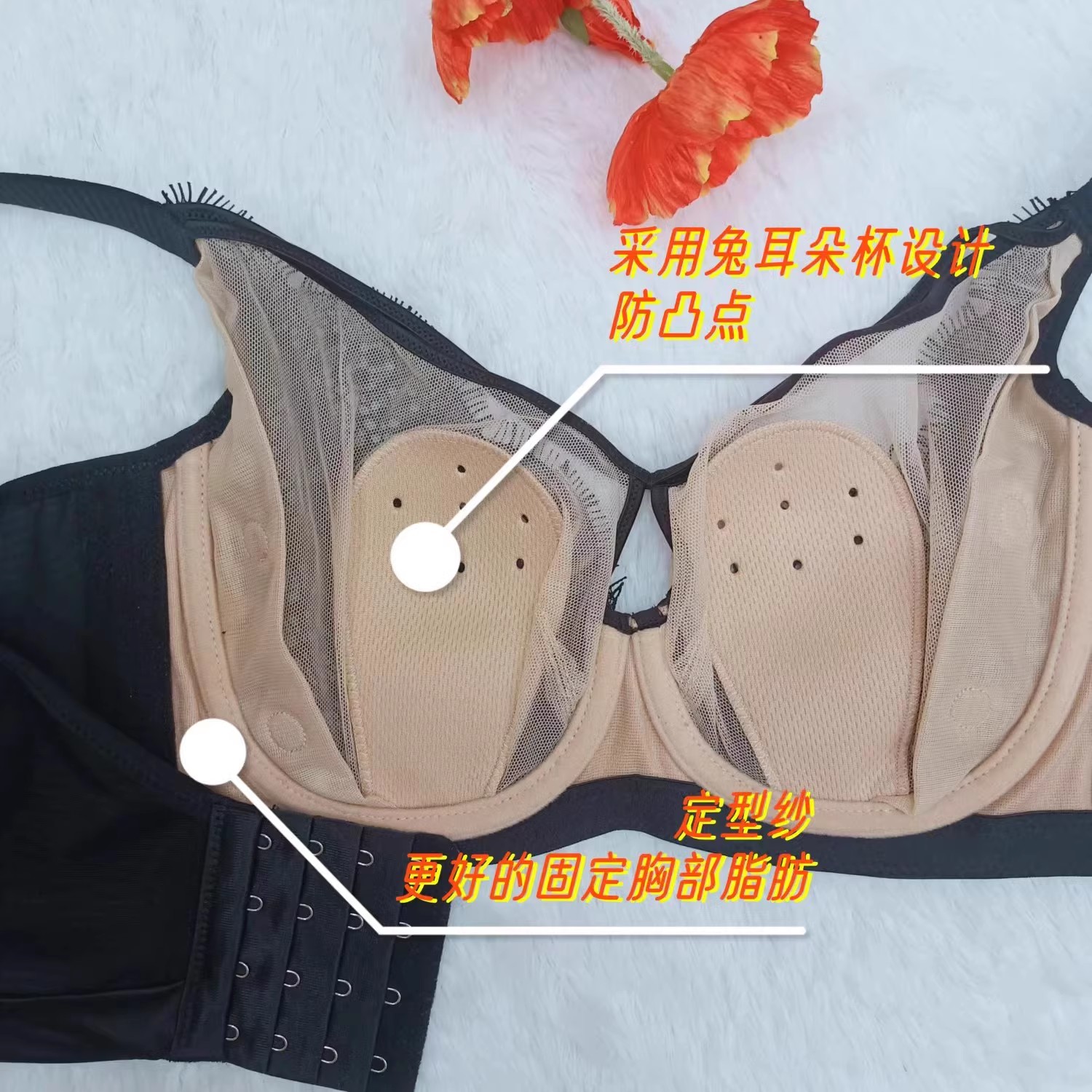 纤妍调整型BW0595性感不跑胸侧收蕾丝边大胸显小薄杯兔耳朵内衣