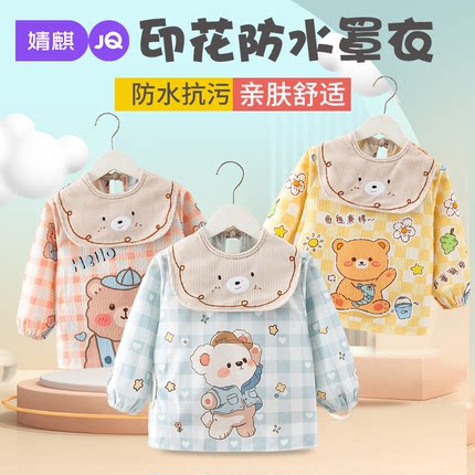 婧麒宝宝罩衣婴幼儿宝宝吃饭防水防脏围裙反穿衣男童女童吃饭围兜