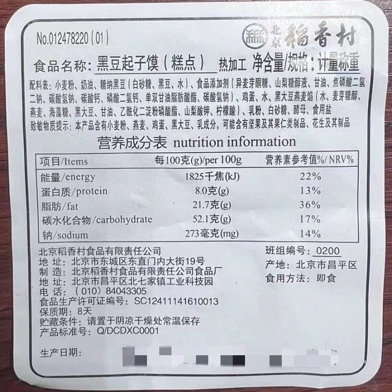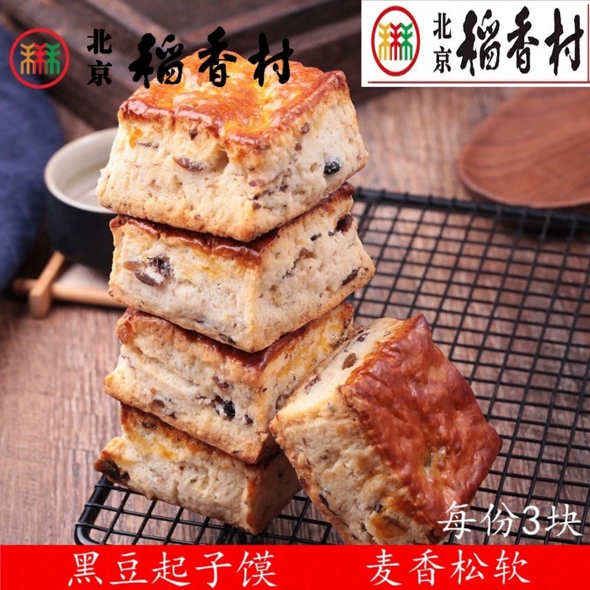 三禾北京稻香村黑豆起子馍3块糕点心传统特产零食小吃散装真空