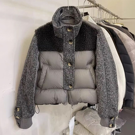 特大码韩版百搭气质加厚毛呢拼接棉服女冬季胖mm休闲显瘦保暖外套
