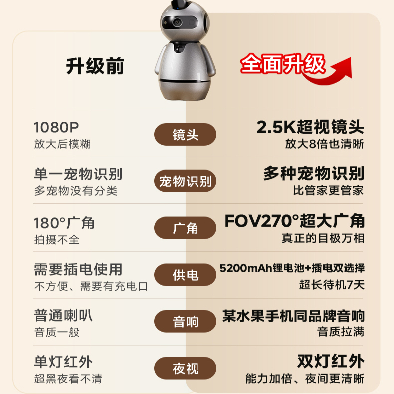 皮可宝宠物摄像头智能监控无线免插电远程手机录像高清家用摄像E1