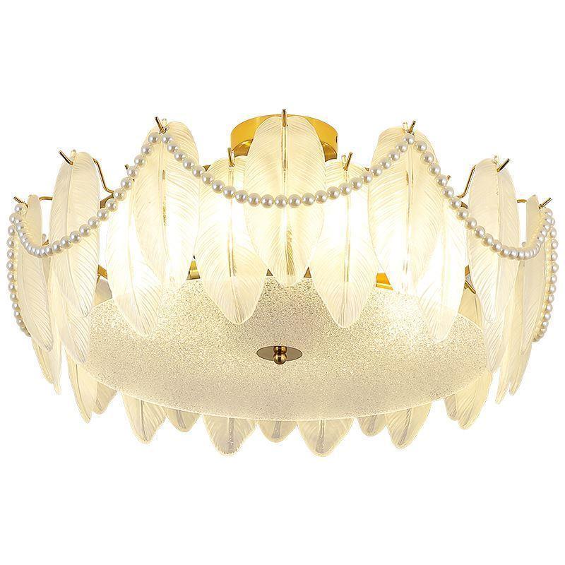 美式吸顶灯客餐厅卧室书房玄关创意轻奢羽毛珍珠浪漫玻璃铁艺灯具