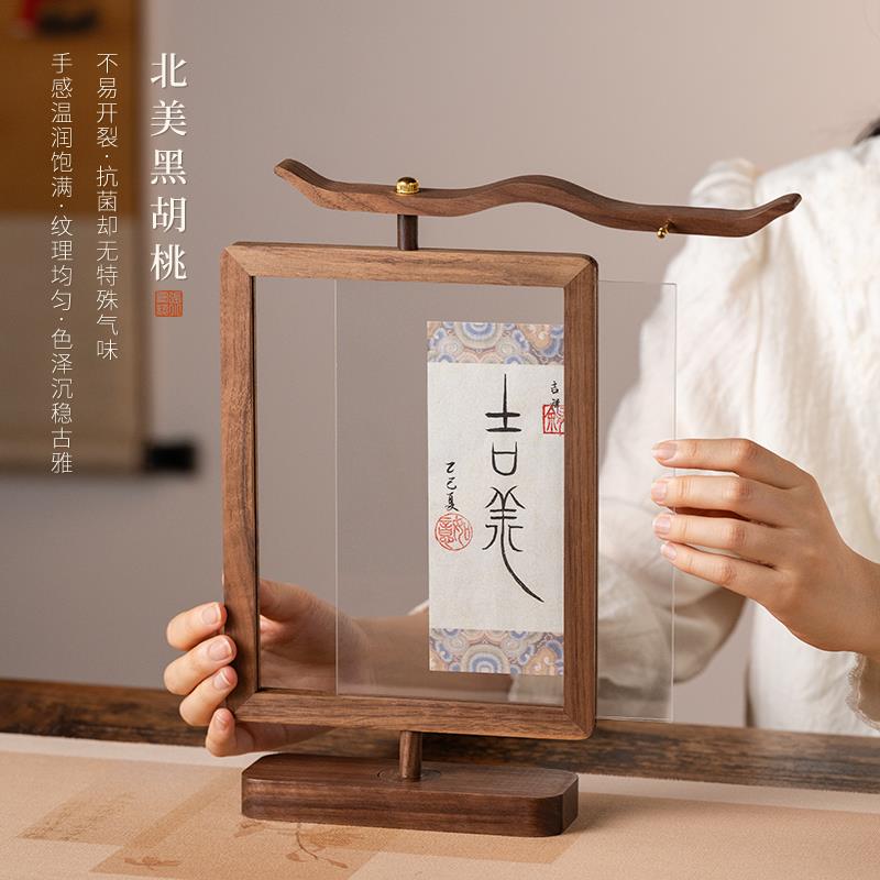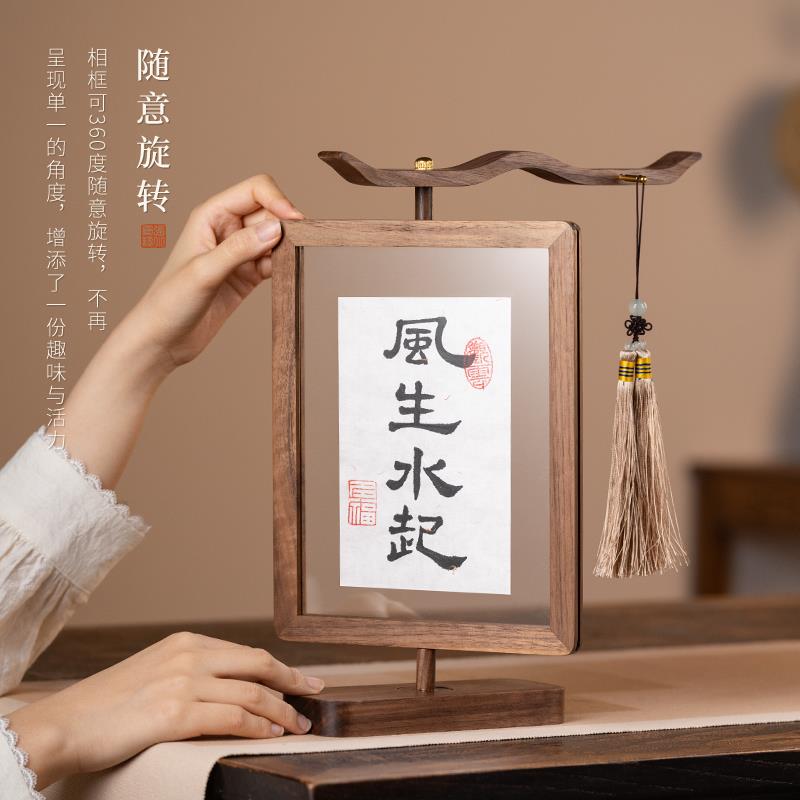 张小凤摆台画框文房四宝双面实木旋转复古裱框新中式高级感国风礼