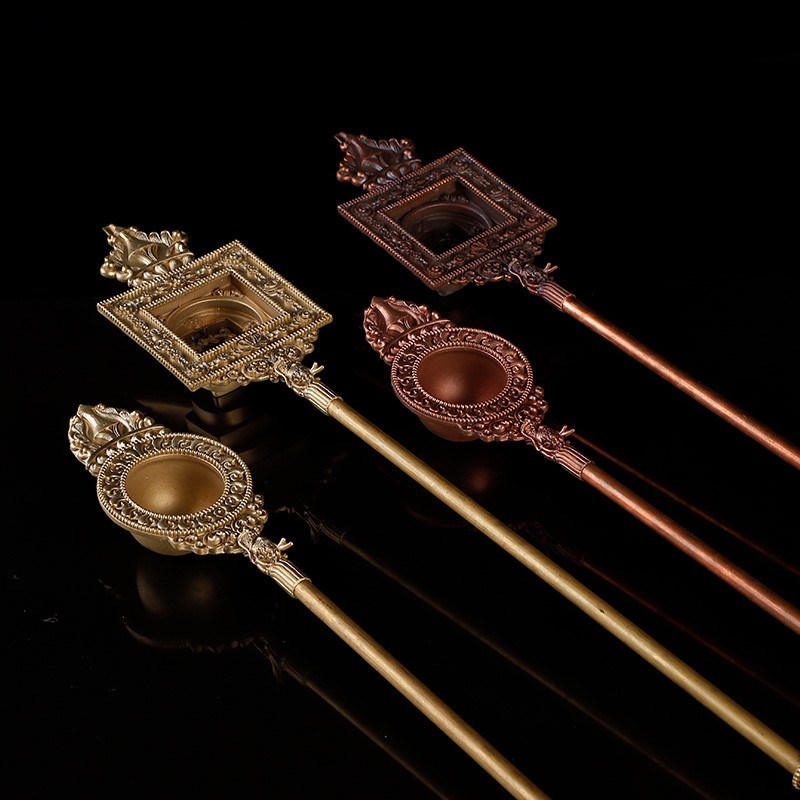 藏传纯黄铜红铜火供勺密宗烟供勺尼泊尔仿O古铜护摩勺供勺一对