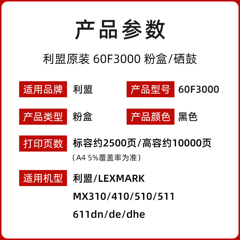 原装利盟60F3000粉盒 Lexmark 60F3H0E墨粉盒 MX310dn MX410de MX511de MX611dhe 碳粉盒打印机