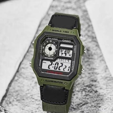 卡西欧手表男 帆布钢带防水夜光复古小方块狂飙同款AE-1200WHB-3B
