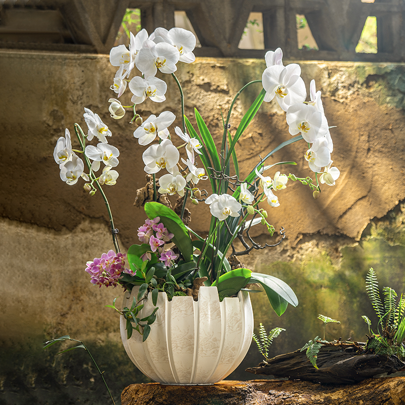 森空间仿真绿植插花室内咖啡餐饮会所桌面装饰摆件花艺植物蝴蝶兰