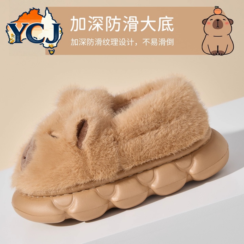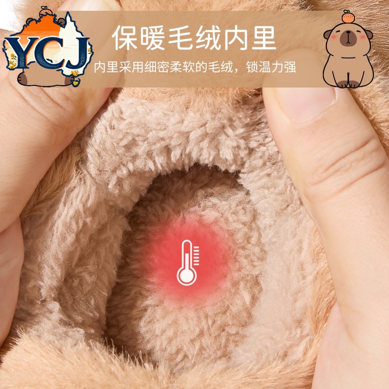 卡皮巴拉儿童棉拖鞋男童冬室内居家棉鞋宝宝毛毛绒包跟毛拖鞋男孩