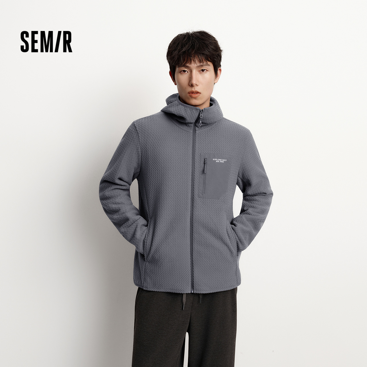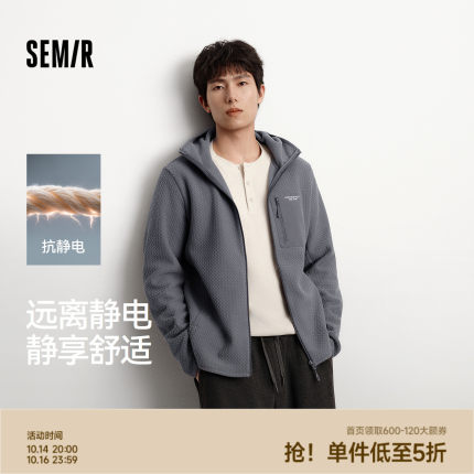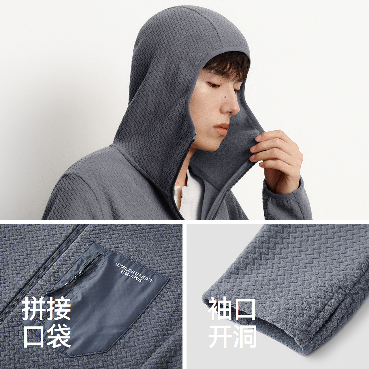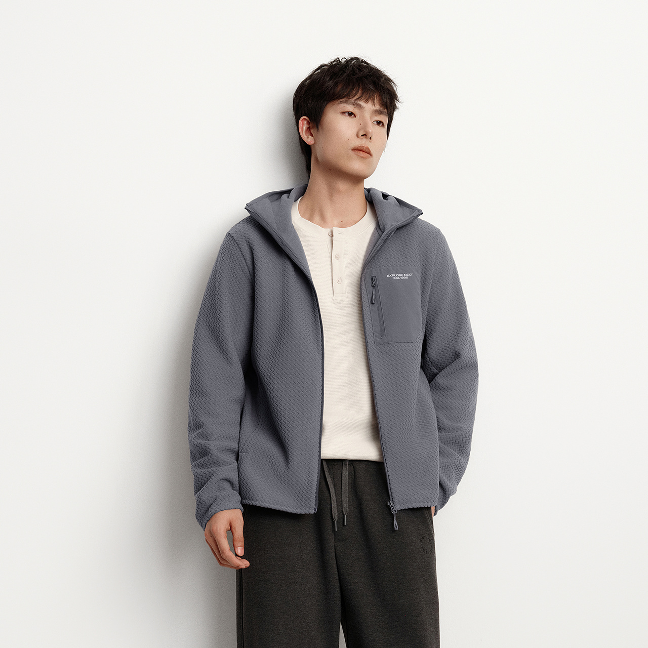 森马外套男抗静电摇粒绒针织夹克2025冬季新款连帽上衣拼接户外潮