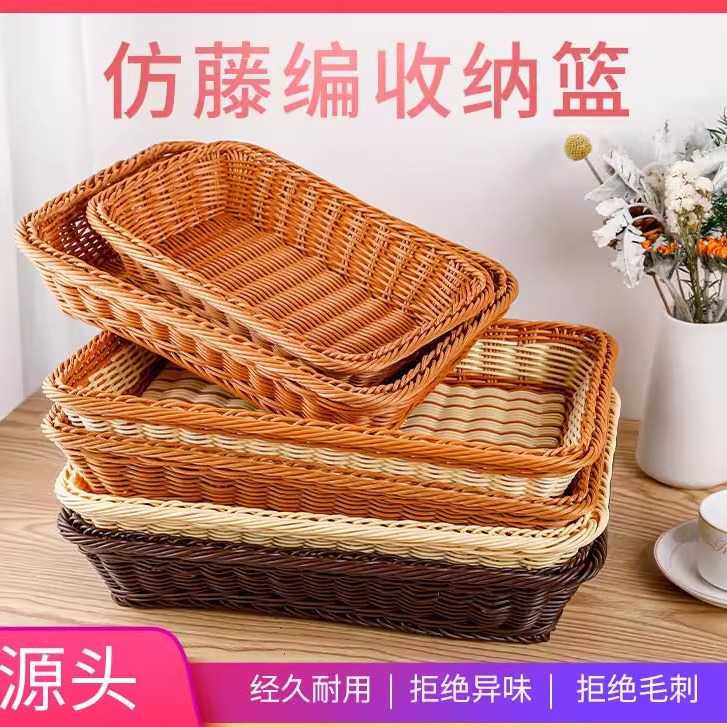 馍筐家用篮子手工藤编织竹篓长方形收纳竹编制篮子厨房放馒头的筐