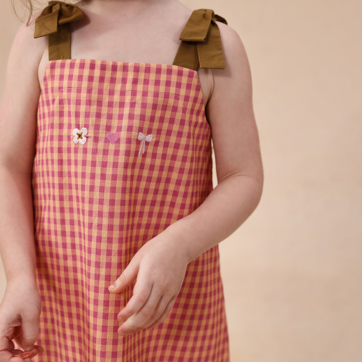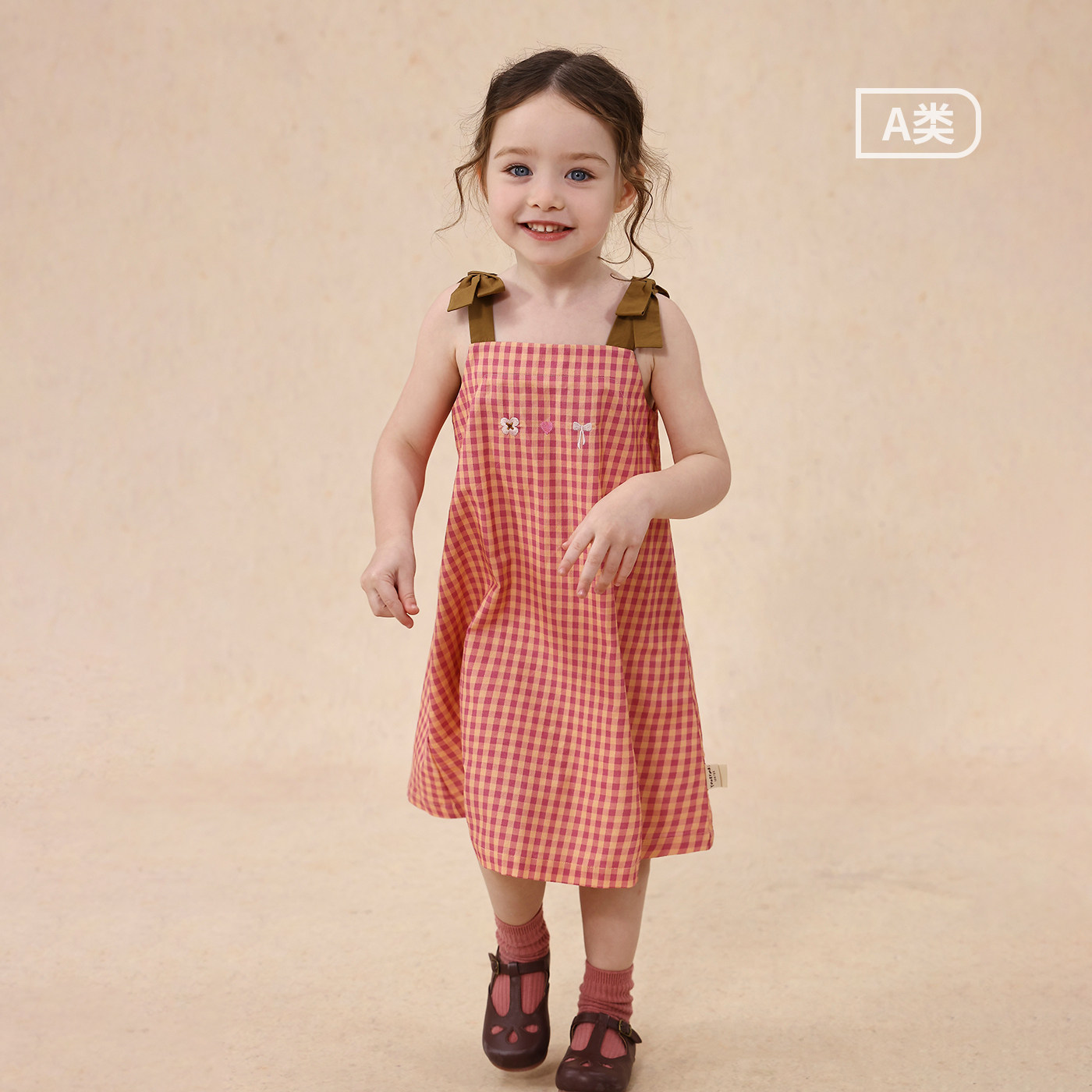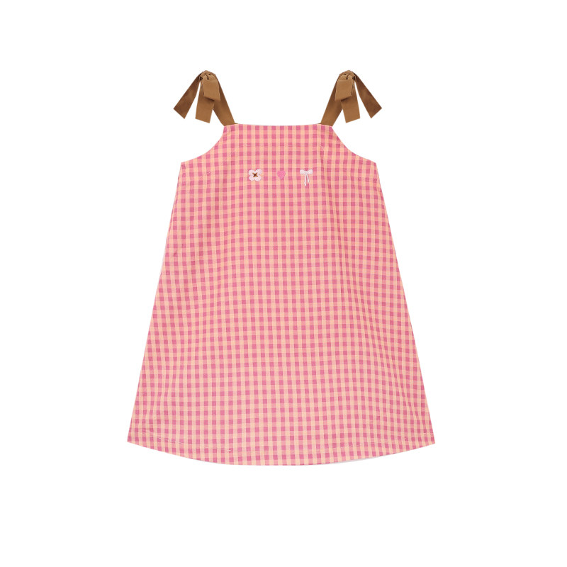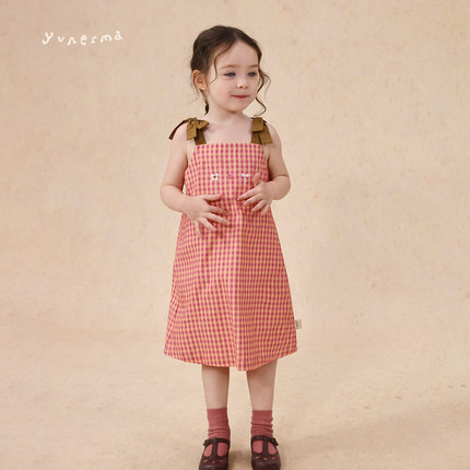 允儿妈女童夏季小众刺绣蝴蝶结吊带裙宝宝格子连衣裙儿童背心裙潮