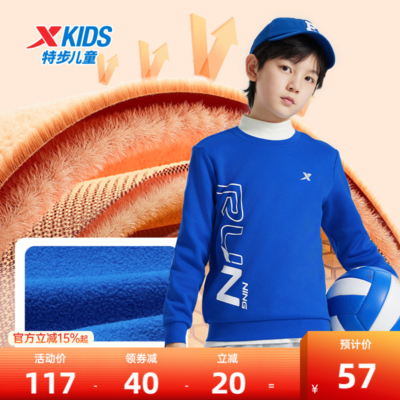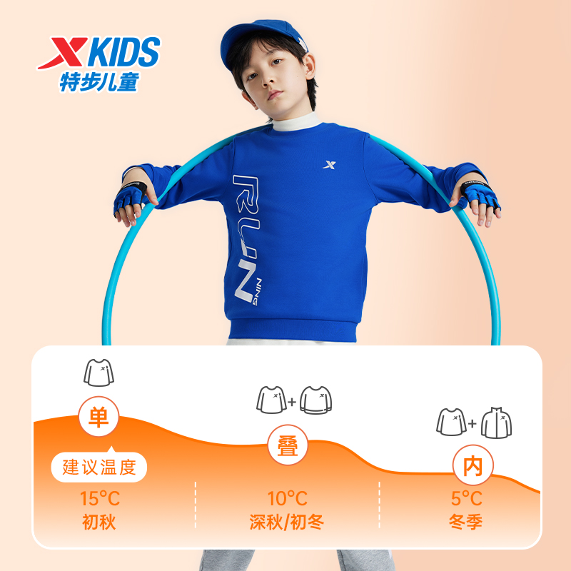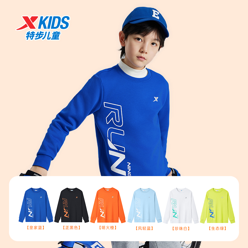 特步童装男童卫衣春秋季加绒2025新款儿童卫衣男孩中大童上衣长袖