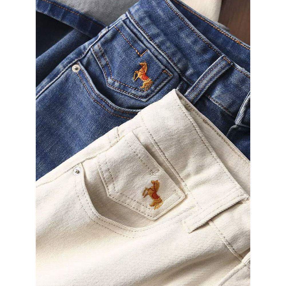 春新遮胯显瘦修腿型天丝四面弹显瘦小马刺绣直筒烟管九分牛仔裤女