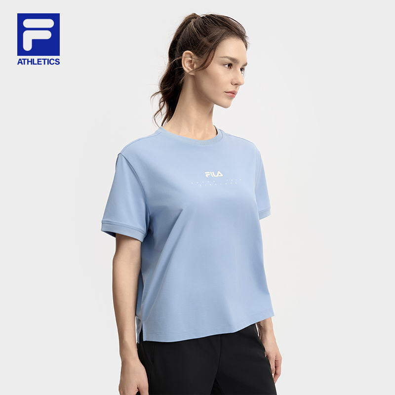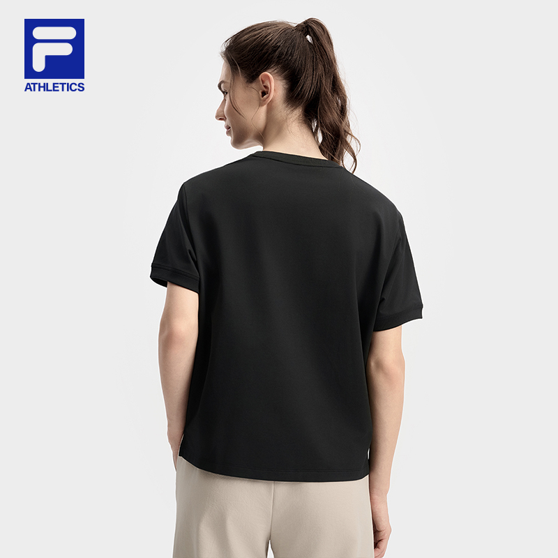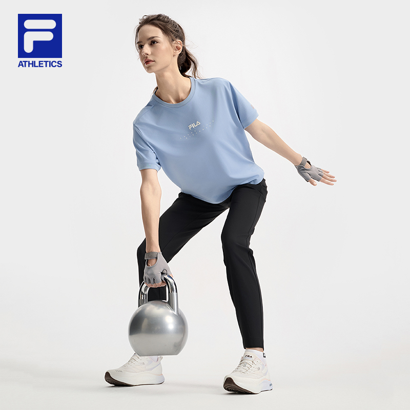 FILA 斐乐官方女子针织短袖衫2025秋新款健身运动简约宽松圆领T恤