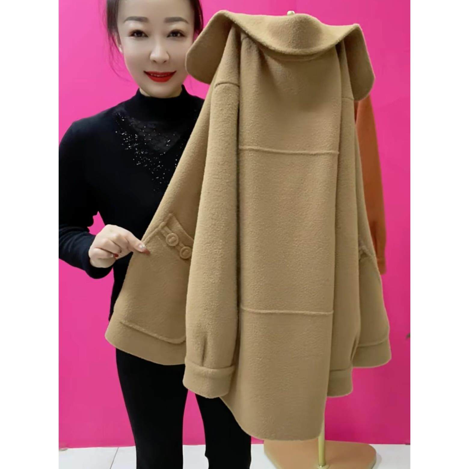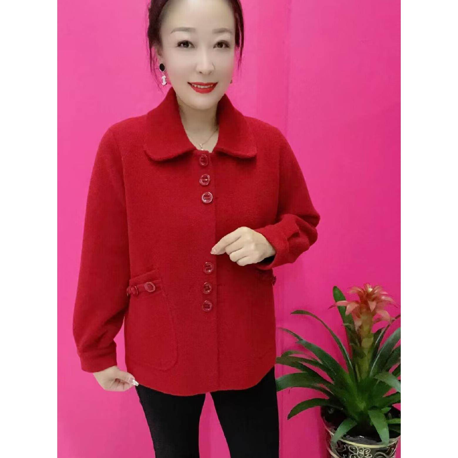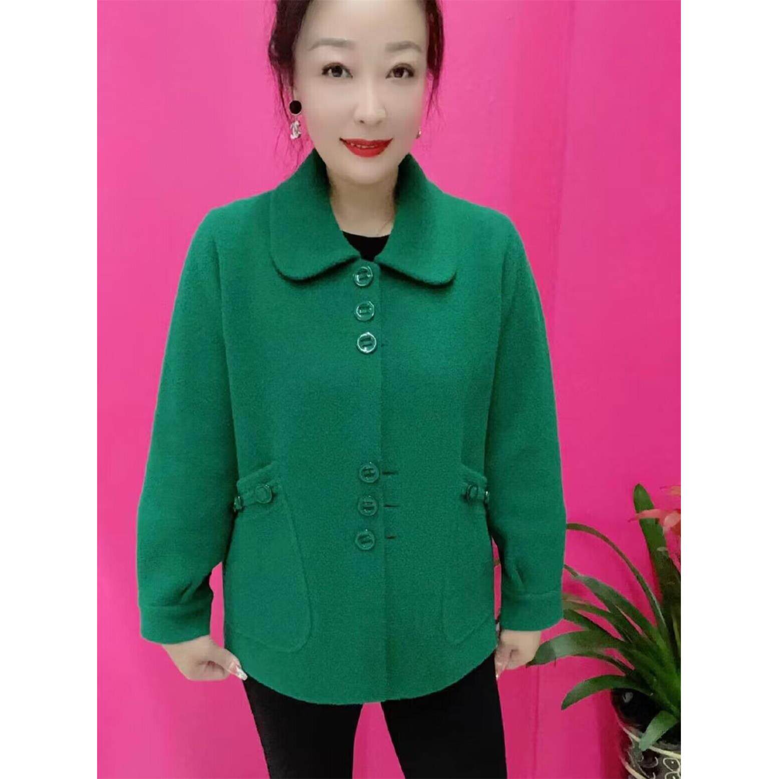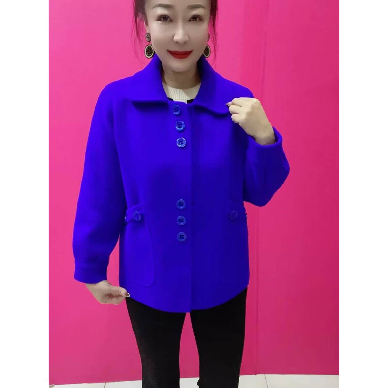 2024秋冬新款妈妈仿双面呢洋气时尚短款纯色外套中年女针织开衫