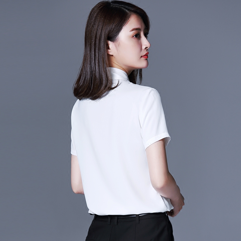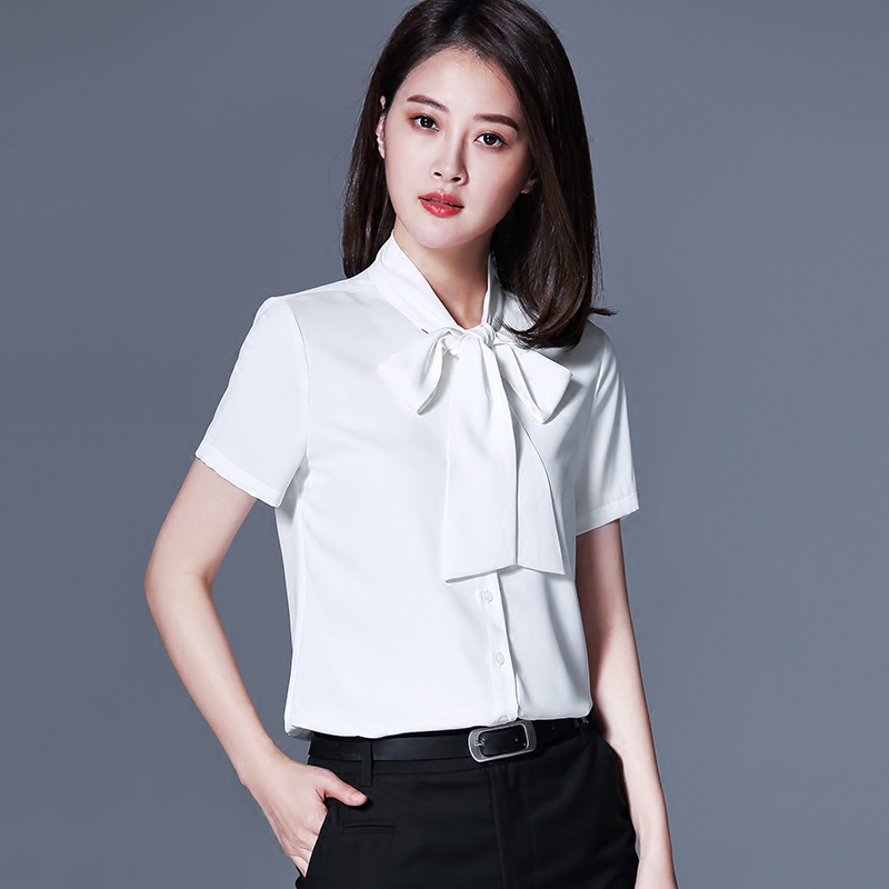 蝴蝶结衬衫女短袖夏职业装XY白色