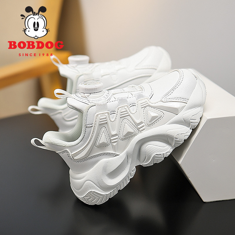 巴布豆童鞋男童运动鞋2025秋冬新款防水皮面儿童旋纽扣轻便软底鞋