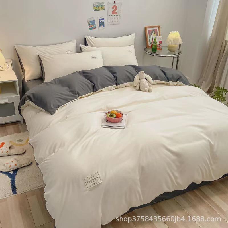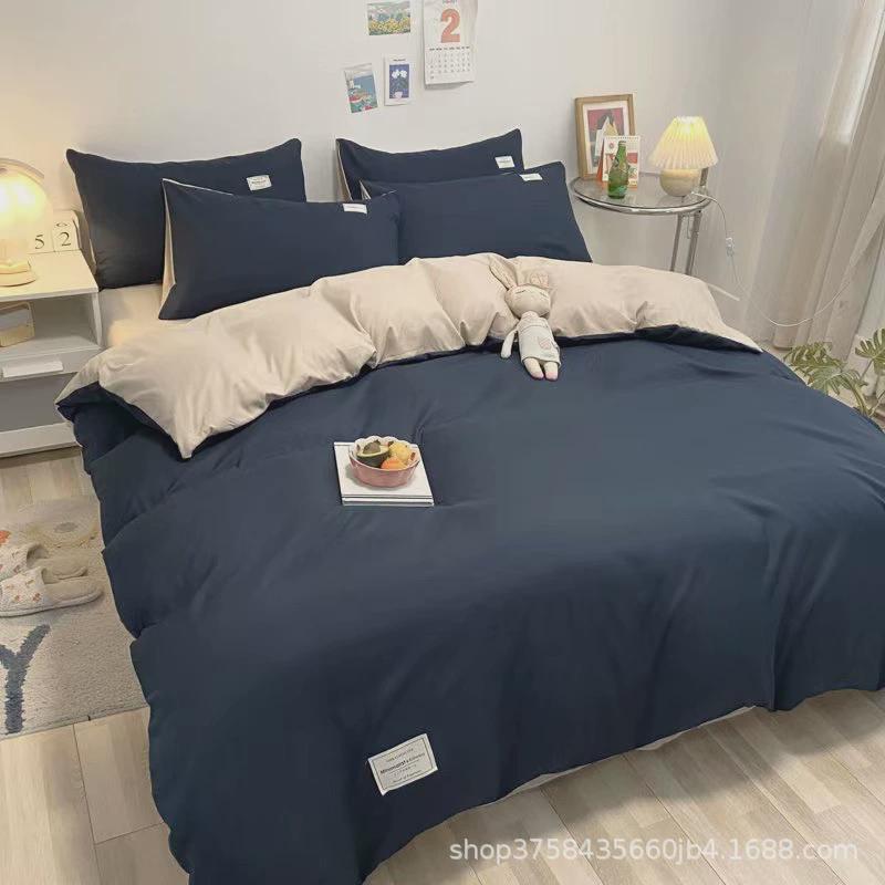 日系简约单人纯色四件套床单被套床上用品学生宿舍水洗棉三件套