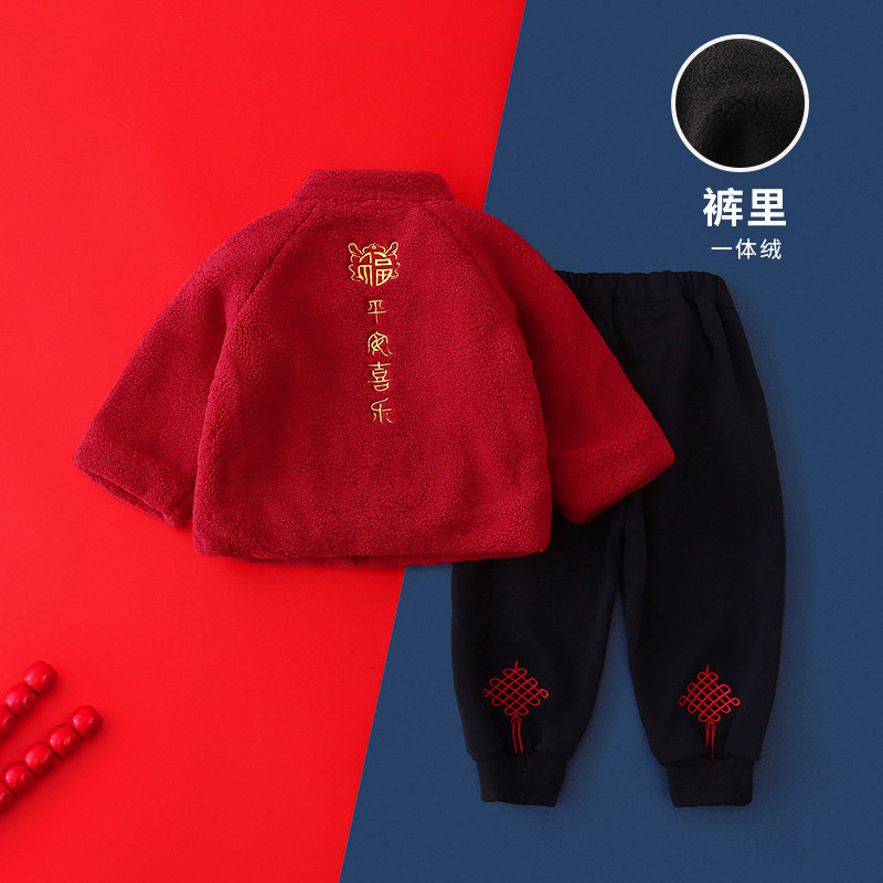 男童拜年服棉衣儿童过年喜庆衣服冬季宝宝红色中国风唐装夹棉外套