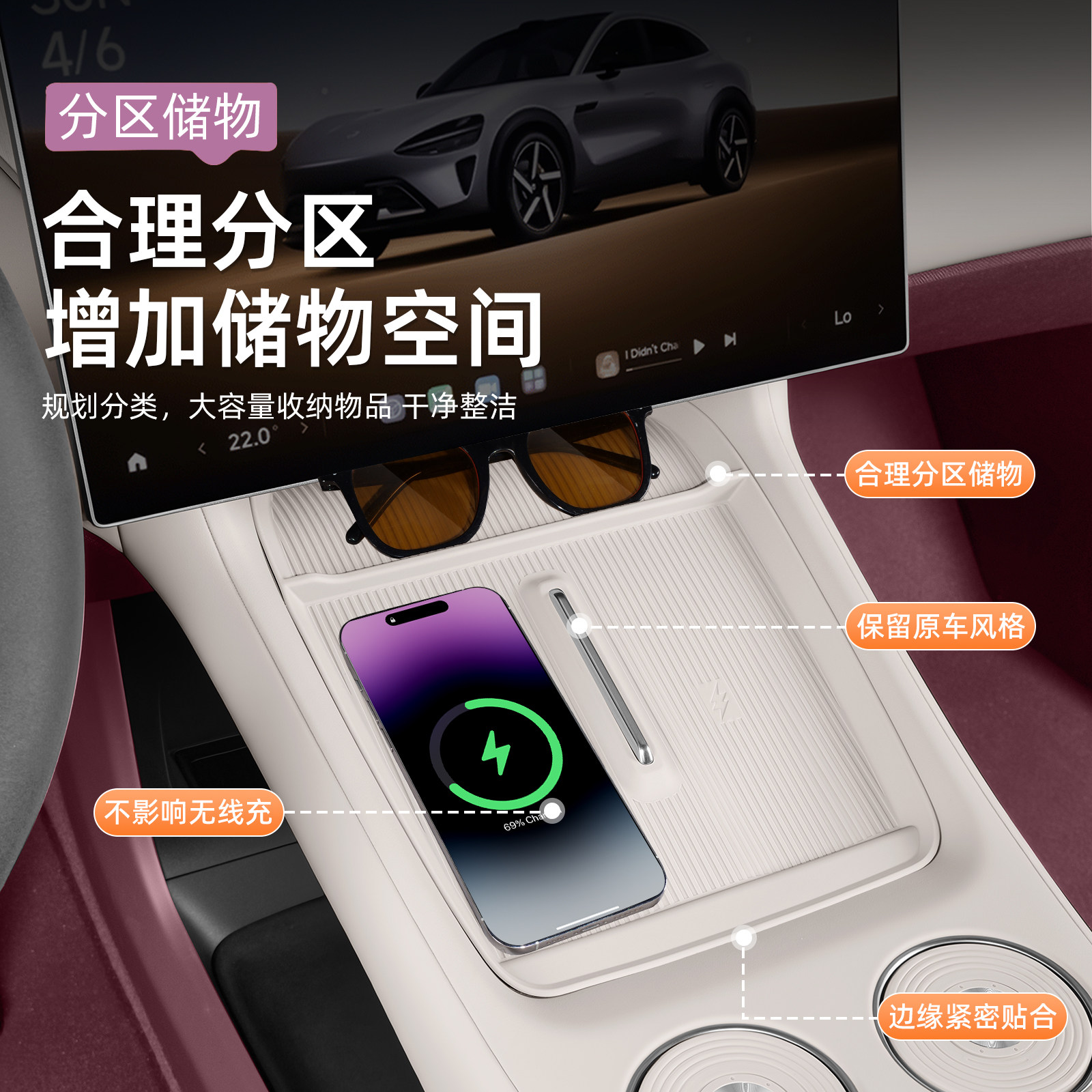 适用于小米YU7无线充电硅胶垫中控防滑储物盒保护水杯垫汽车装饰