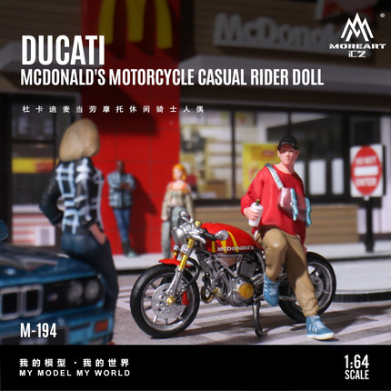 汇艺1:64 杜卡迪怪兽696红色摩托少女 微缩仿真树脂模型 摆件造型