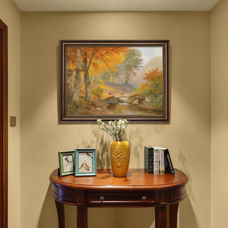 美式玄关装饰画走廊过道欧式客厅背景墙挂画山水风景壁画复古油画