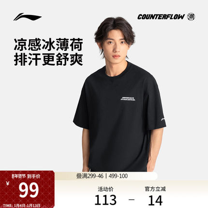李宁户外CF溯丨短袖T恤男士男装圆领夏季凉感透气体恤运动服男