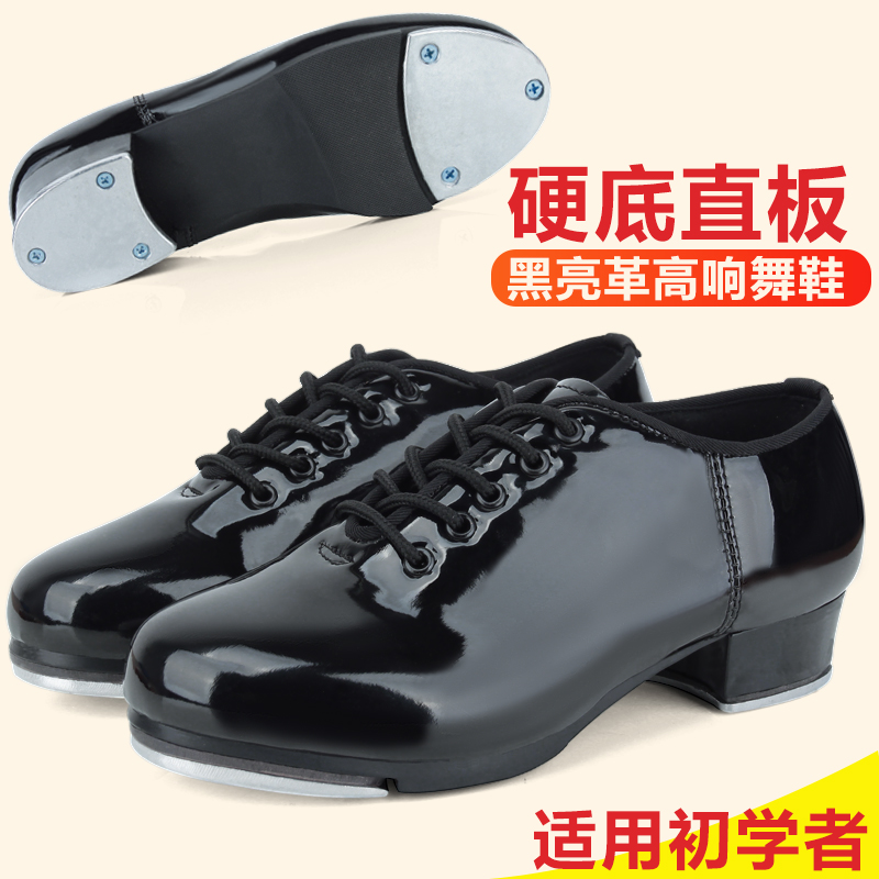 女踢踏舞鞋男直板硬底女童女孩儿童男童男孩少儿黑色舞蹈跳舞舞鞋
